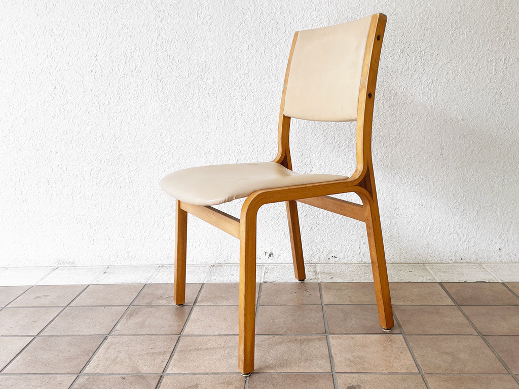 天童木工 Tendo T-0592 ダイニングチェア 食堂イス プライウッド ビーチ材 コマ入れ成形 ビニールレザー ビンテージ ジャパニーズモダン 中古品 買い取りしました。