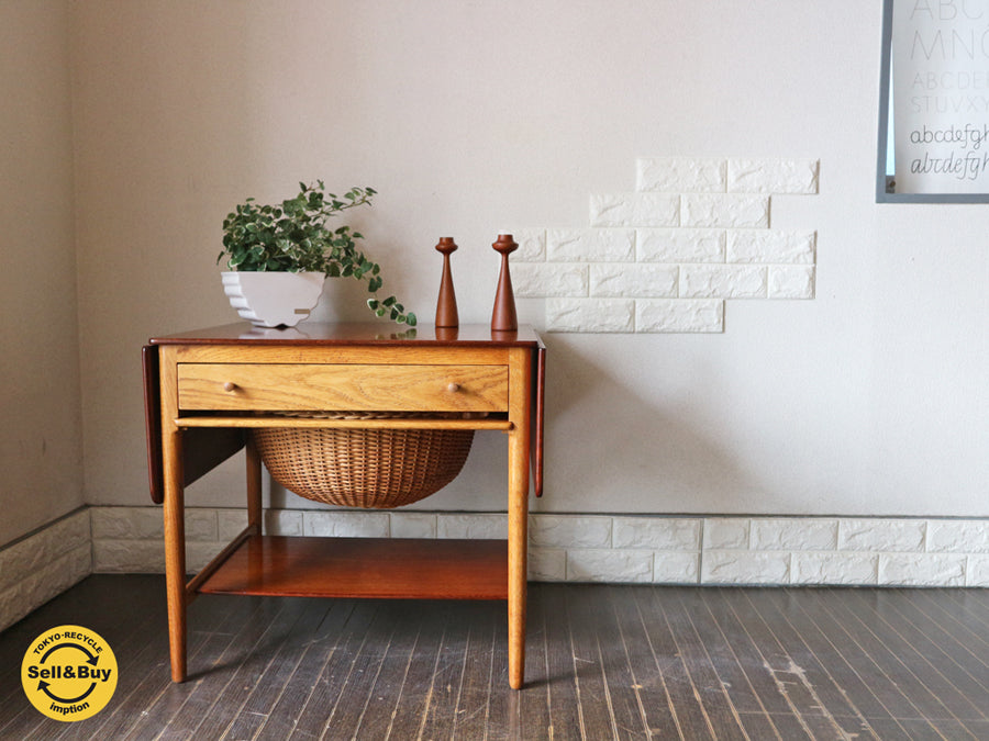 アンドレアス・タック Andreas Tuck AT33 ソーイングテーブル チーク材 オーク材 ハンス・J・ウェグナー デンマーク ビンテージ 北欧家具 ~縫い、編む為の家具~