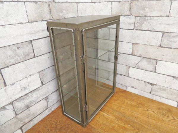 インダストリアルデザイン Industrial Design ガラス × スチール ショーケース 小型収納 ディスプレイケース 店舗什器 ビンテージスタイル ●