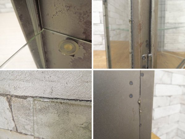 使用に伴い側面や底にスレ、ガラスに小さなチップが数箇所御座います。使用には問題ございませんが、ガラスを触る際はご注意下さい。また、全体的に錆や溶接跡等が見受けられますが、これらは製造時からの仕様と思われます。その他ガラスの割れ等、使用上問題となるような大きなダメージは見受けられず、中古品としましては良好なコンディションを保っております。