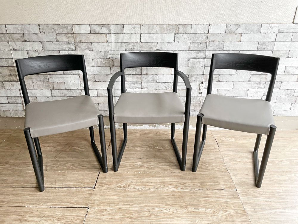 インテリアズ interiors スウィーピー SWEEPY ダイニングチェア アームチェア ブラック×グレー 大城健作 モダンデザイン 定価\99,000- ●