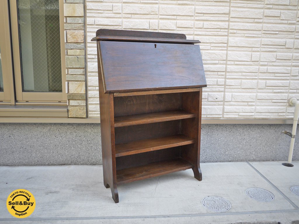 英国 アンティーク スチューデント ビューロー オーク材 シェルフ ◎