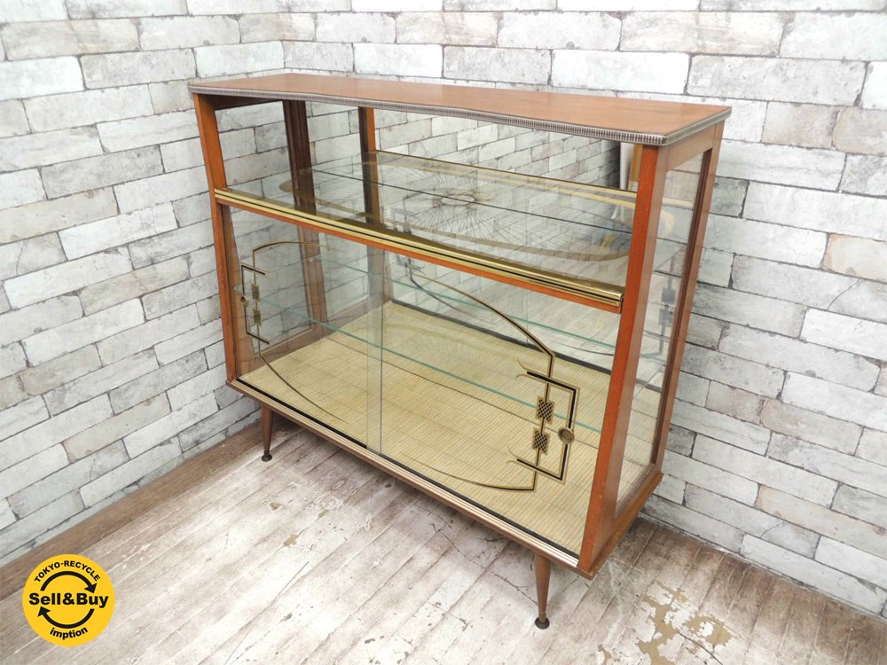 UKビンテージ 50’s ガラスキャビネット カクテルキャビネット ディスプレイケース チーク材 ミラー アンティーク ★