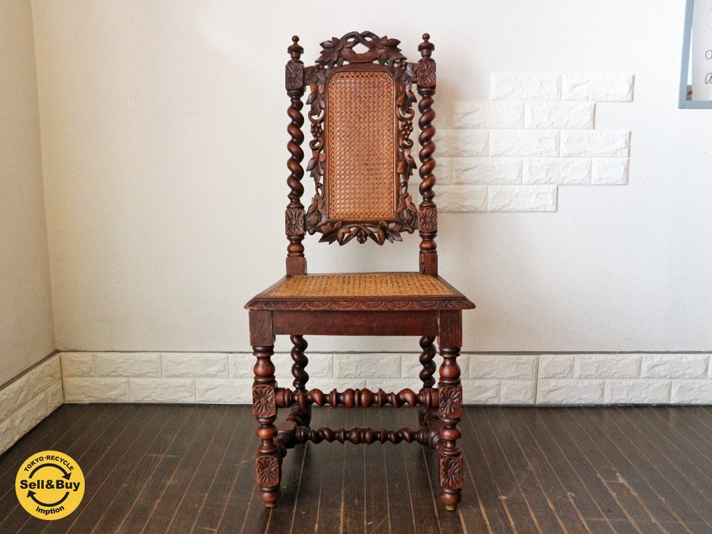 英国 アンティーク ホールチェア バロック様式 UK ヴィンテージ ダイニングチェア イギリス ◎