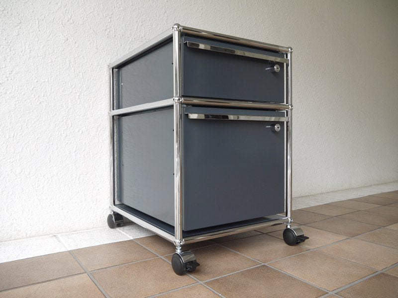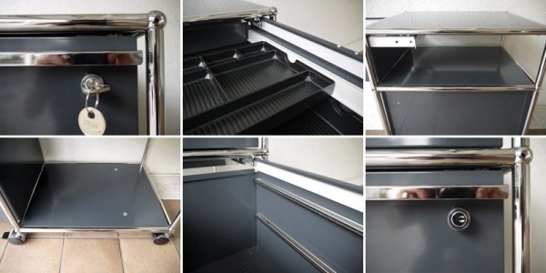 ユーエスエムハラーシステム USM Haller ワゴン + オプション多数 カスタムオーダー品 上下鍵付き 美品 定価18万 アントラサイト ( 濃灰色 ) オフィス家具 MoMA スイス製 ◇