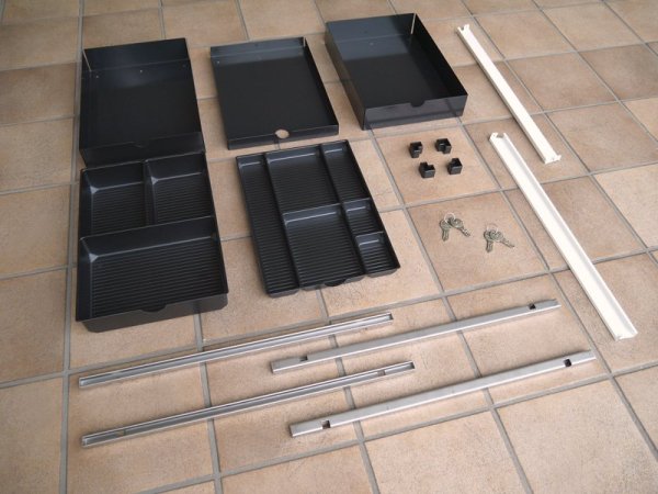 『 ワゴン 』 基本セット + 上下鍵付き スチール&プラスチックトレイ=計6杯