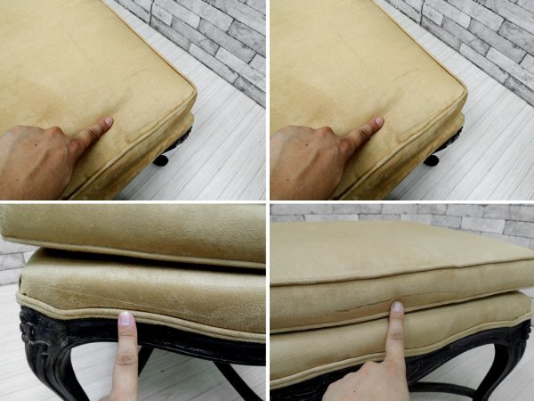 フレームに目立たない程度の細かな傷は御座います。また、クッションにスレやシミがございますが、ご使用には問題ございません。