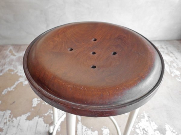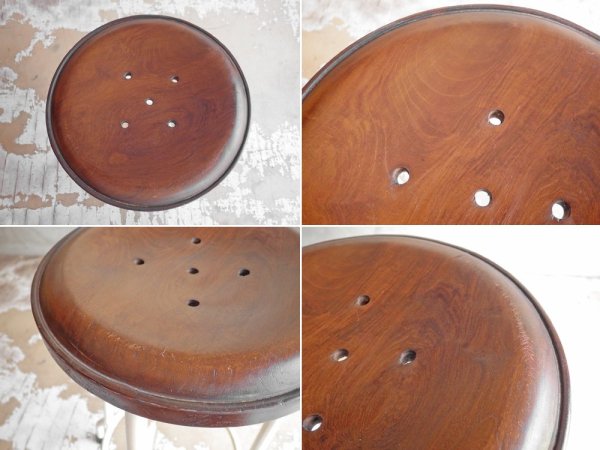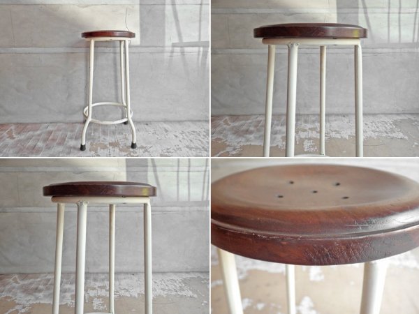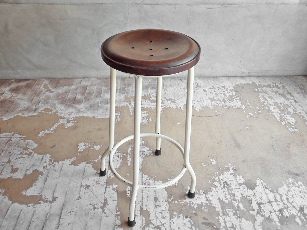 オールドメゾン old maison アイアン スツール Iron Stool ボタン型 H61cm チーク材×アイアン 定価:\13,860- ♪