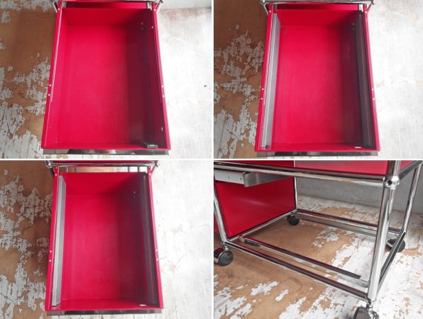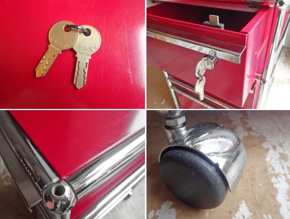 ユーエスエムハラー USM Haller モジュラーファニチャー Modular Furniture ハラーシステム ロールボーイ ワゴン デスクキャビネット 3段 ルビーレッド 鍵付♪