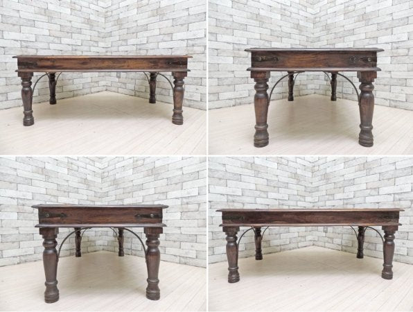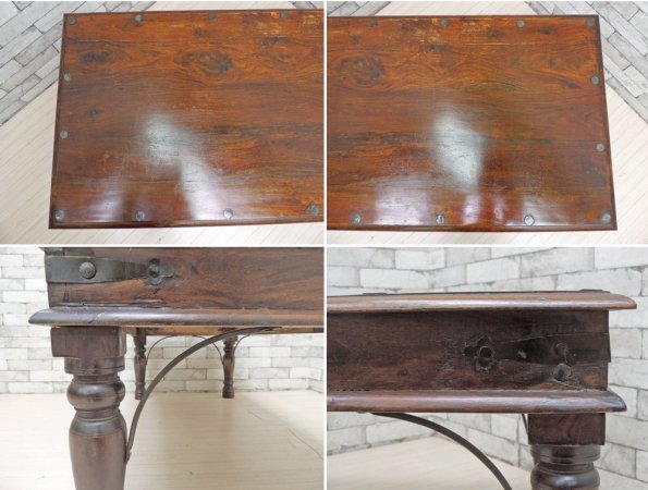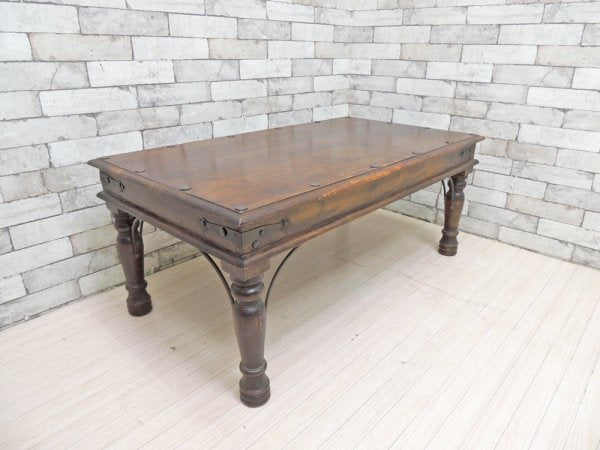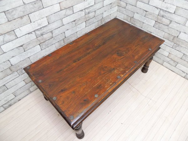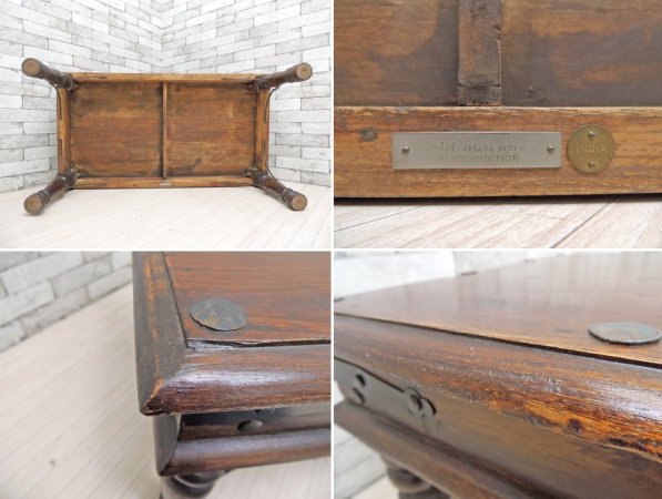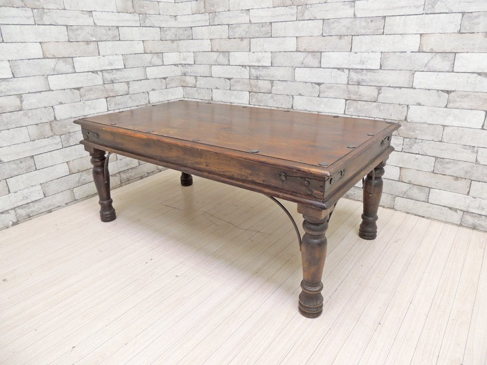オールドメゾン old maison チーク材 鋲留め ローテーブル インディアン アンティーク調 ●