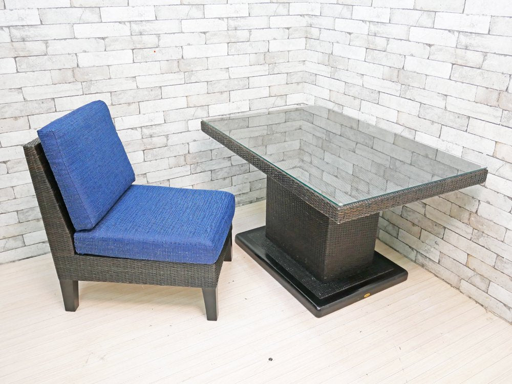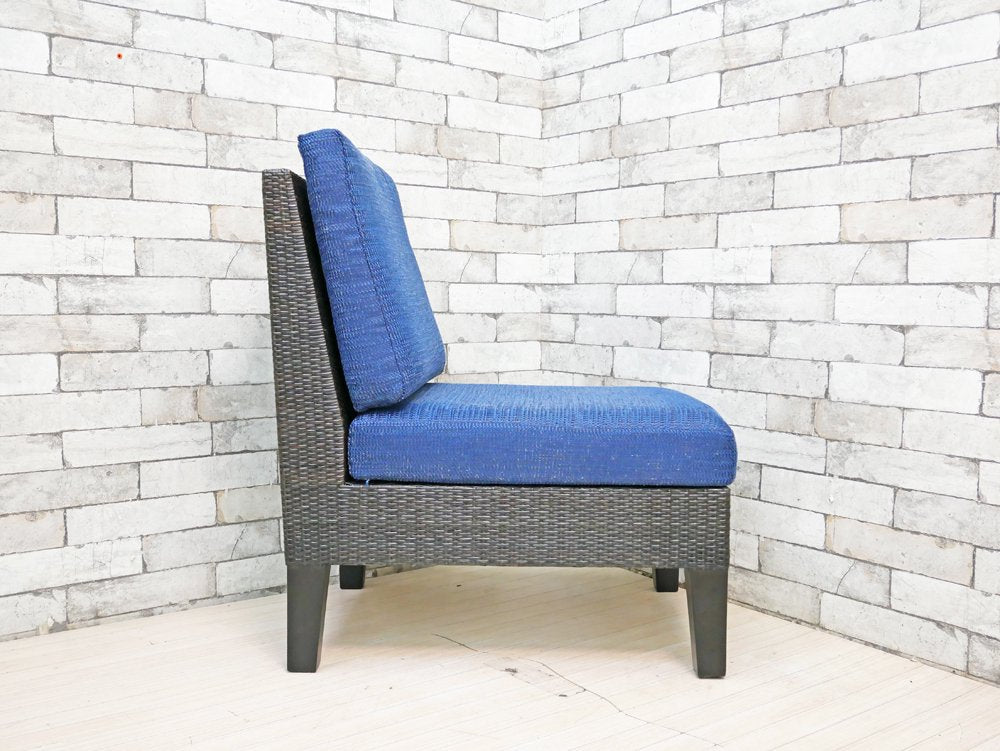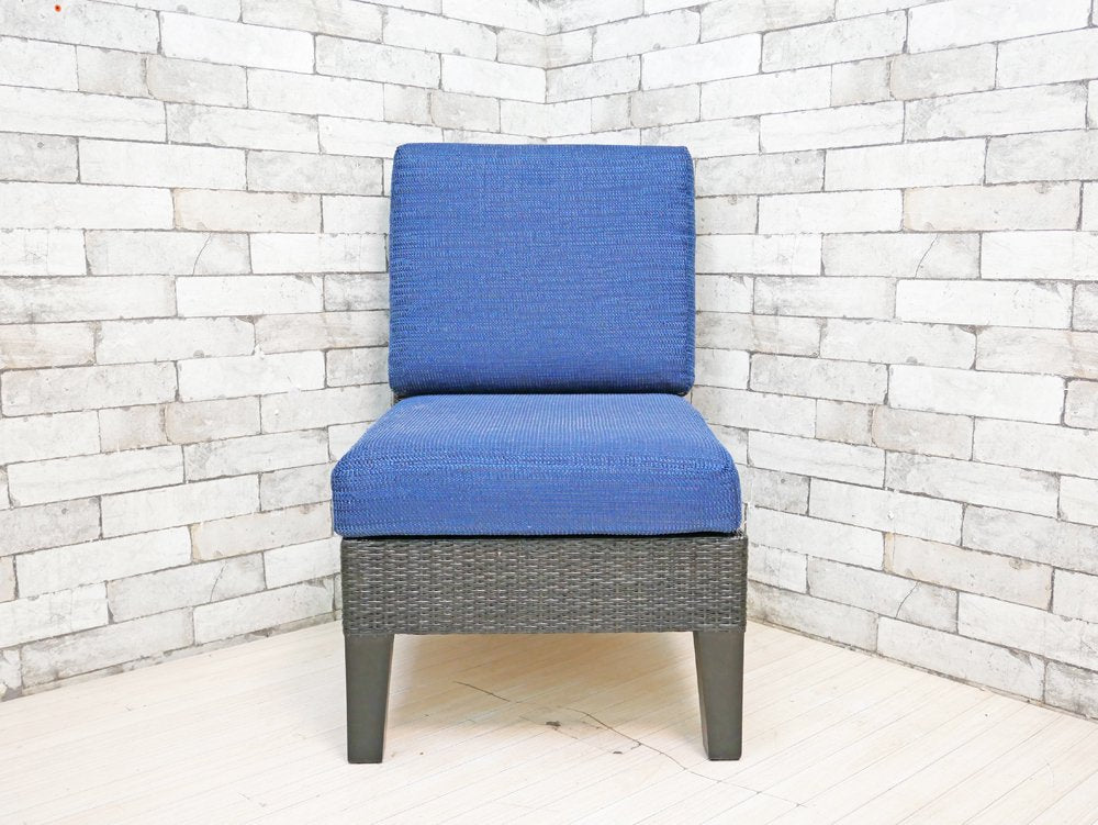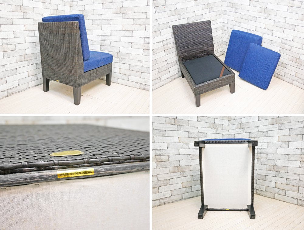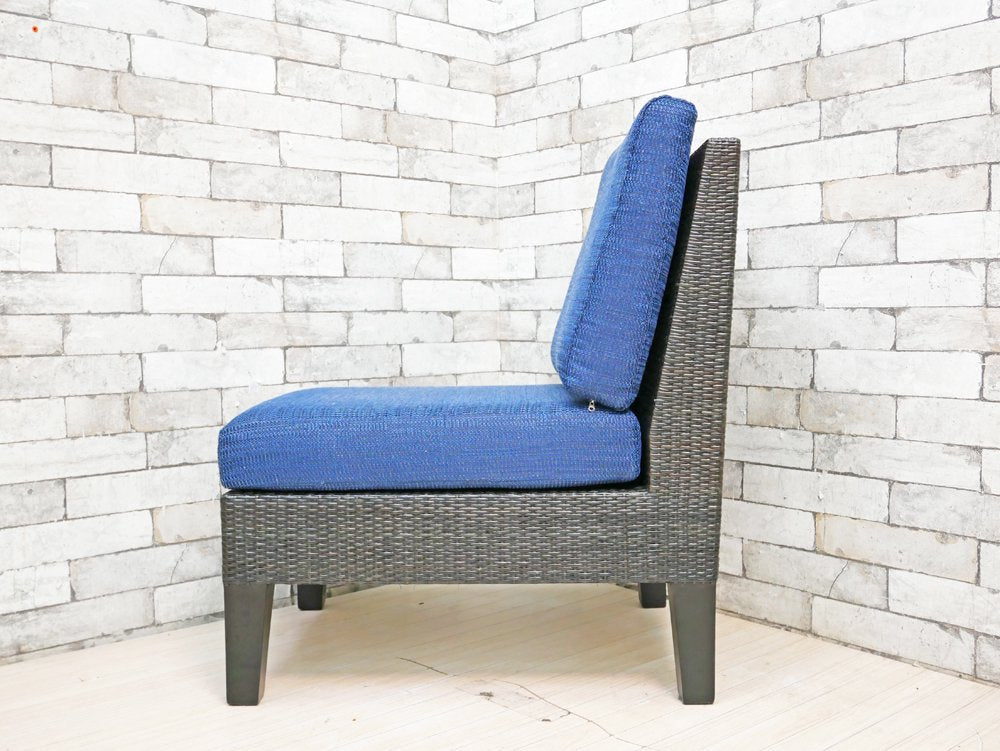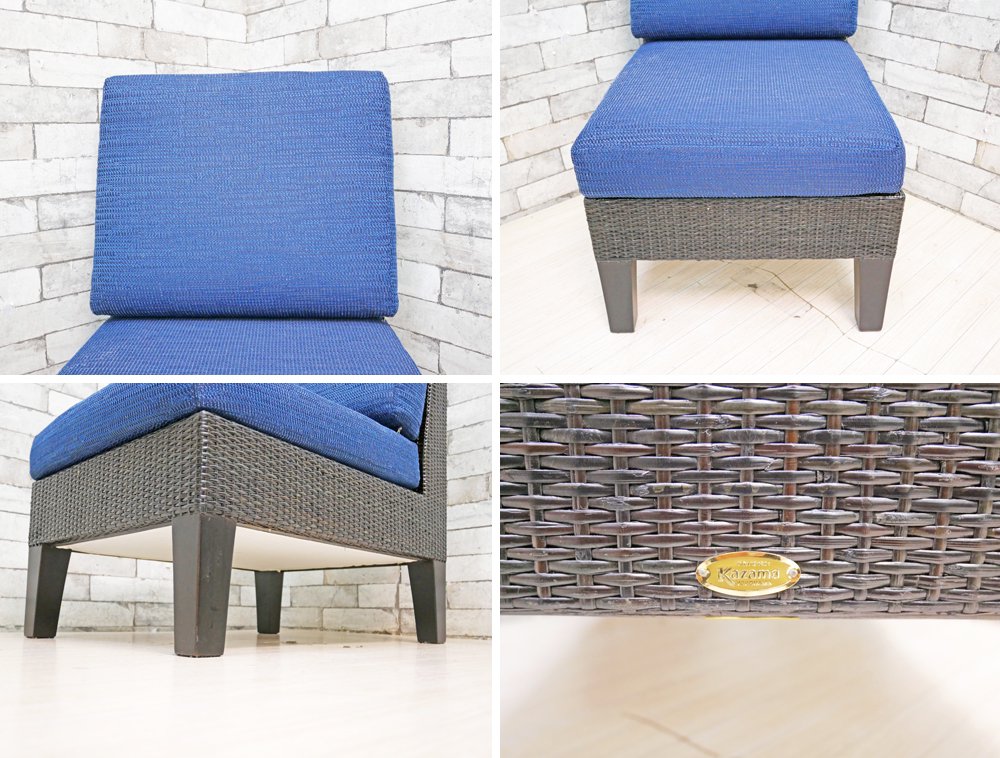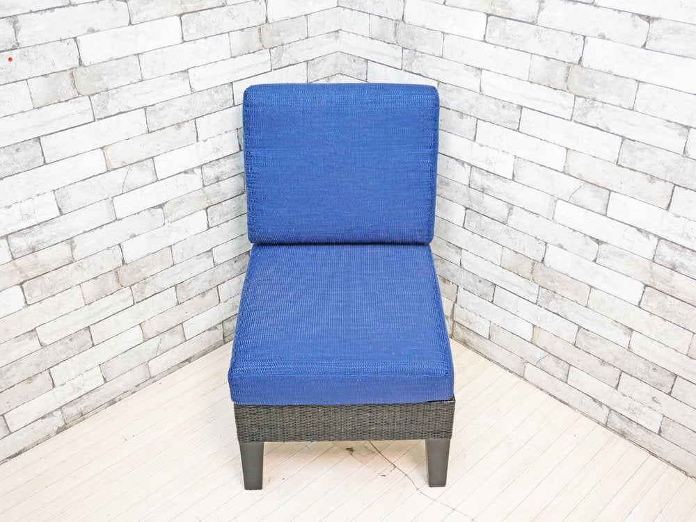 カザマ Kazama ベンチュラ Ventura New LD アームレスソファ ダイニングチェア ファブリック ブルー 籐家具 定価¥63,000- ●