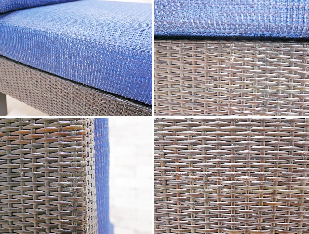 使用に伴い、ラタンの擦れや傷、汚れ等が見受けられます。またファブリックには、毛玉等の若干の使用感が感じられます。