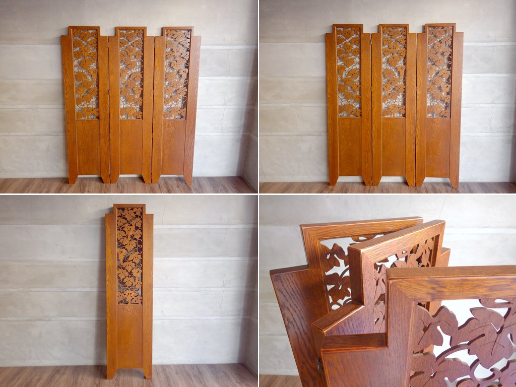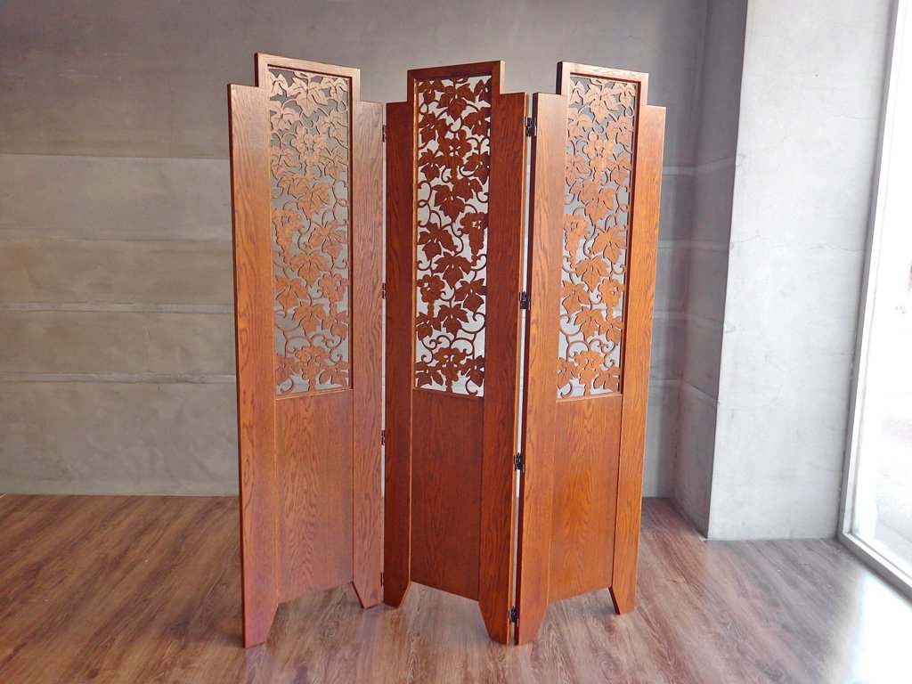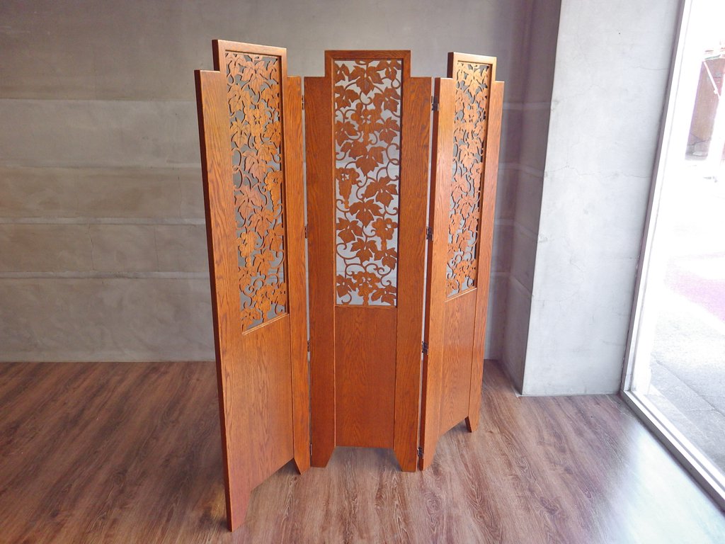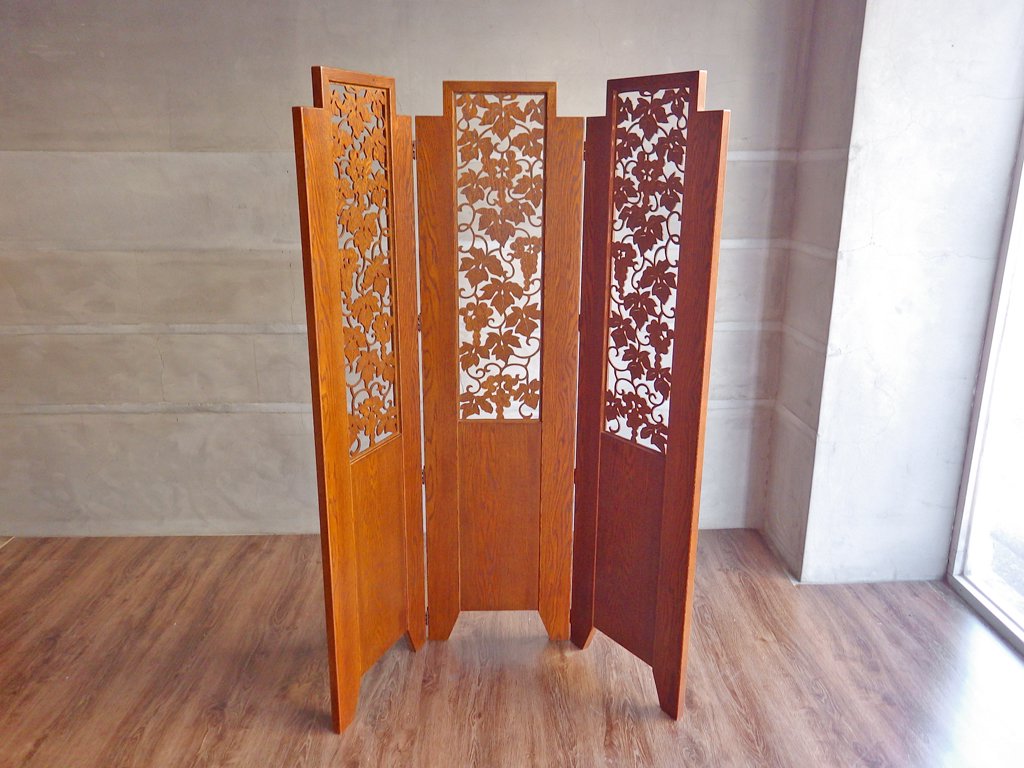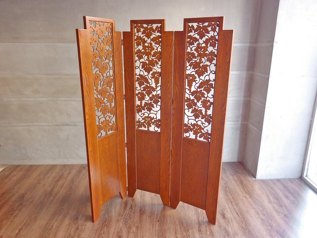 パーテーション 3連スクリーン 透かし挽き 葡萄