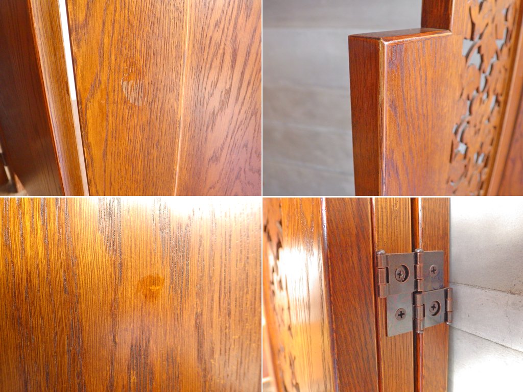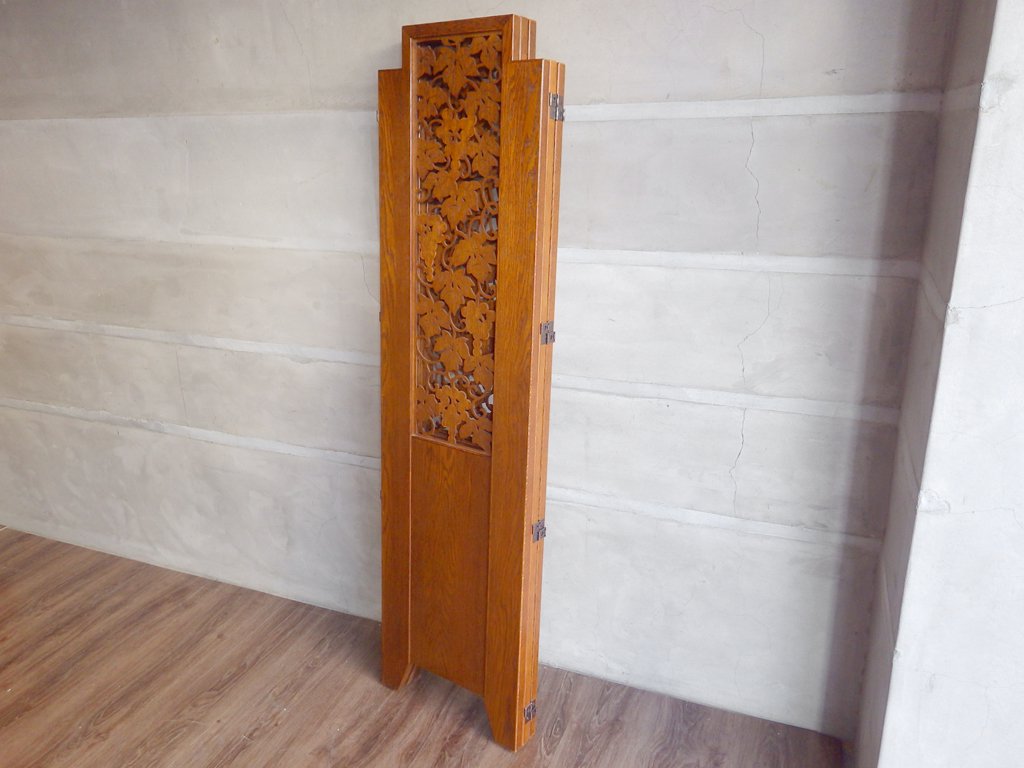 三越家具 ブルージュ Brugge パーテーション 3連スクリーン 透かし挽き 葡萄 英国カントリー ナラ無垢材 ♪