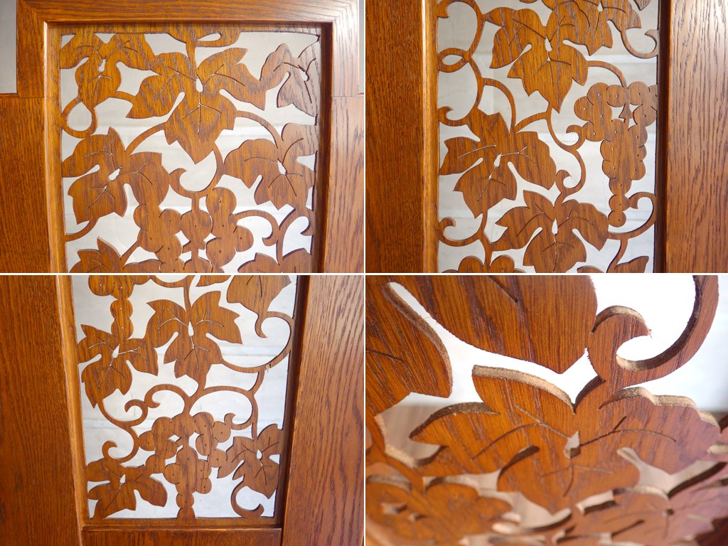 透かし挽きという技法によって、丁寧に彫り込まれた葡萄と蔦の装飾が目を引きます。