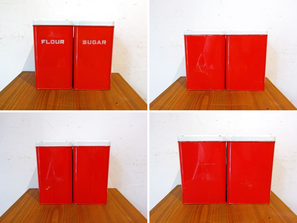 リンカーン社 Lincoln Beautyware キャニスターセット レッド 小麦粉 砂糖 FLOUR SUGAR 缶 キッチン収納 US 1950'sビンテージ ★