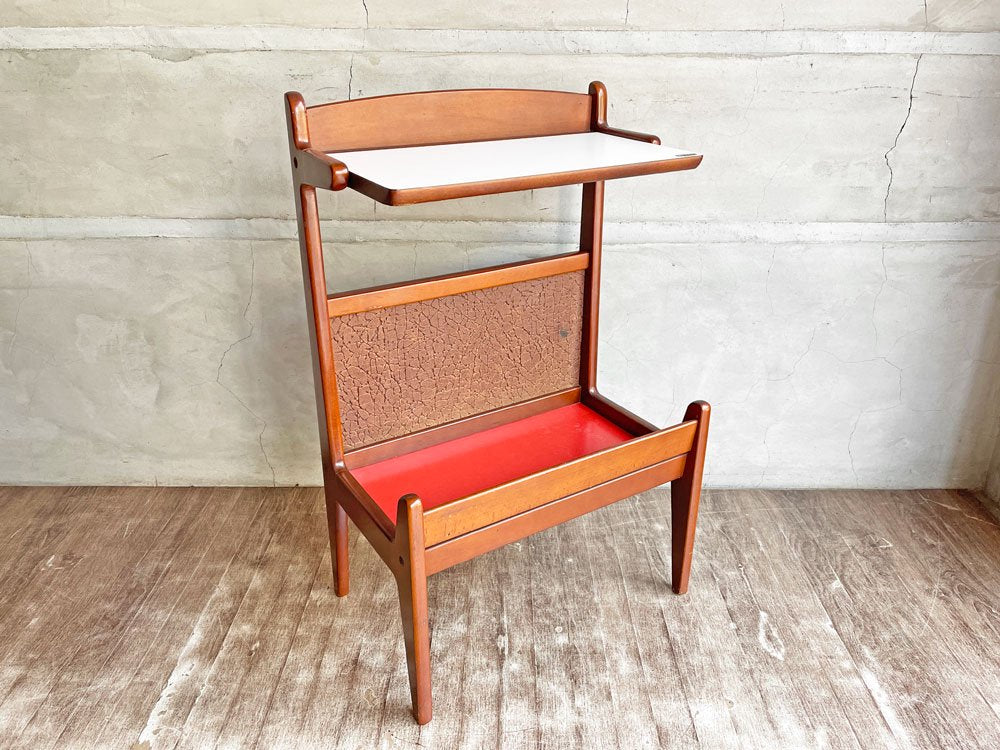 テレフォンラック ビンテージ ビーチ材 メラミントップ 昭和レトロ オールドカリモク