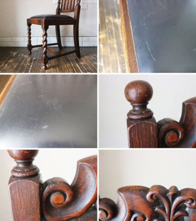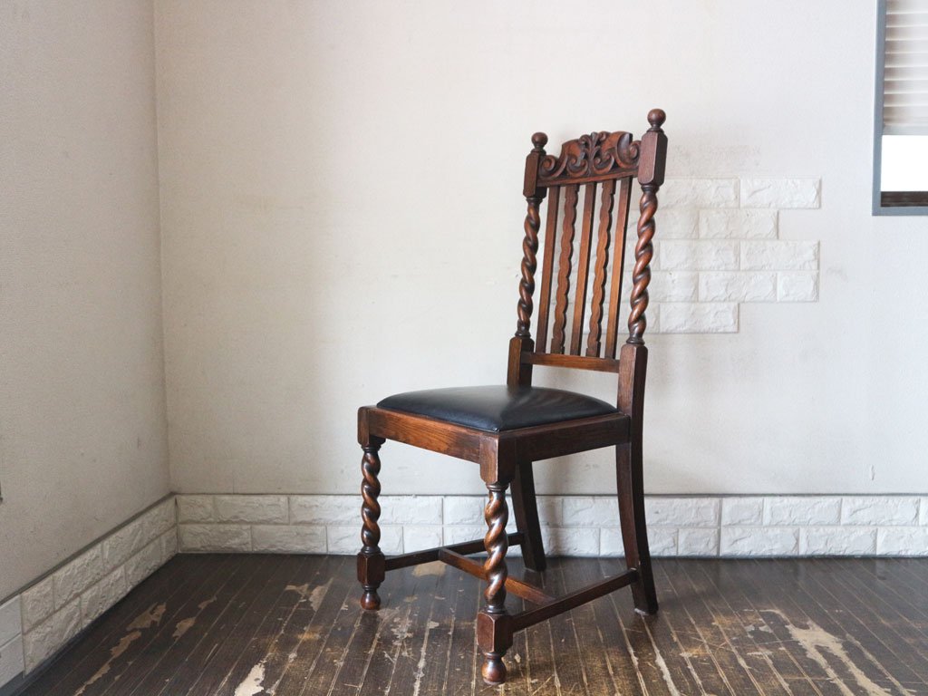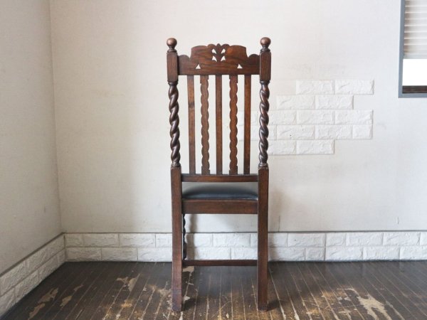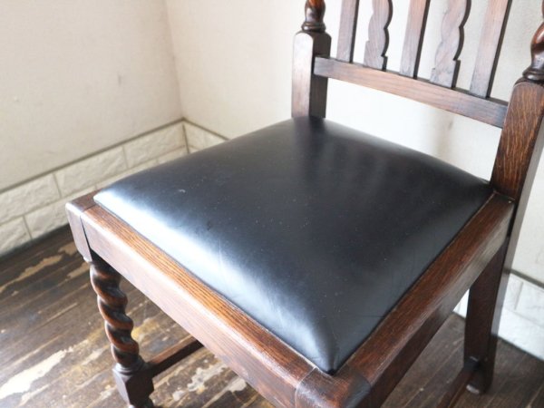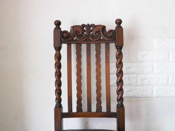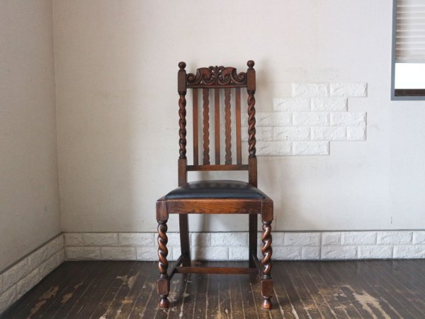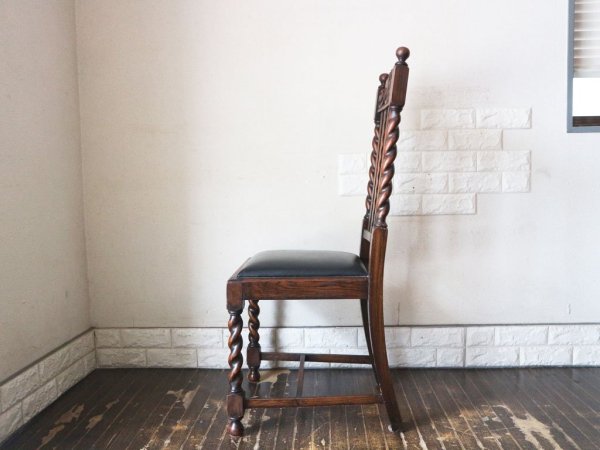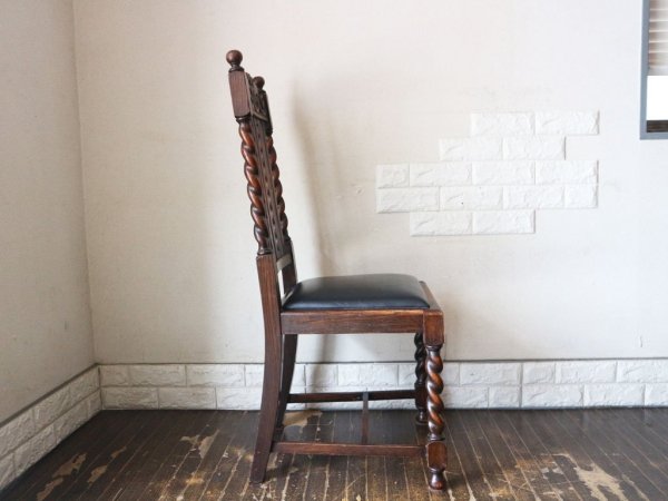 英国 アンティーク ダイニングチェア オーク材 UK ビンテージ ツイストレッグ イギリス ジャコビアン様式 A ◎