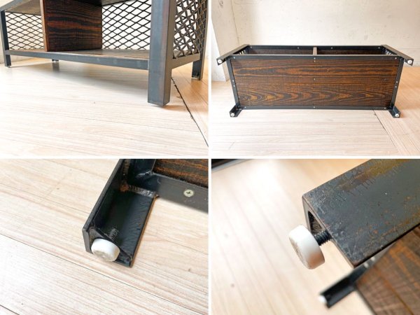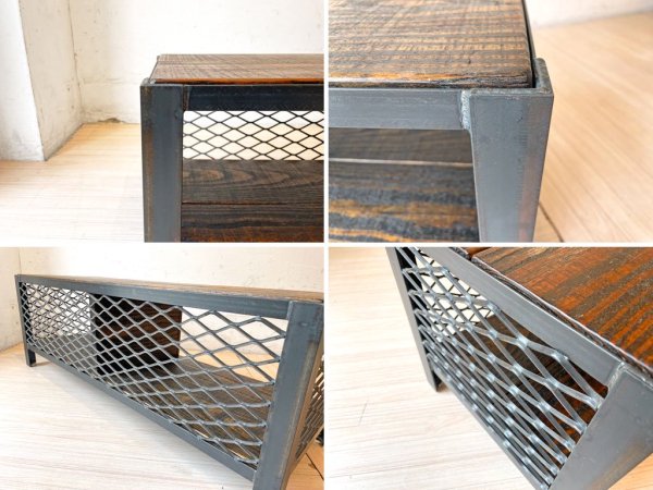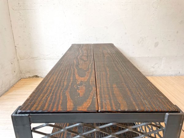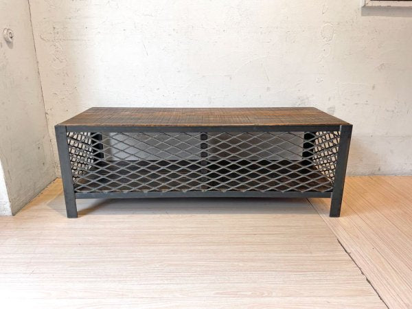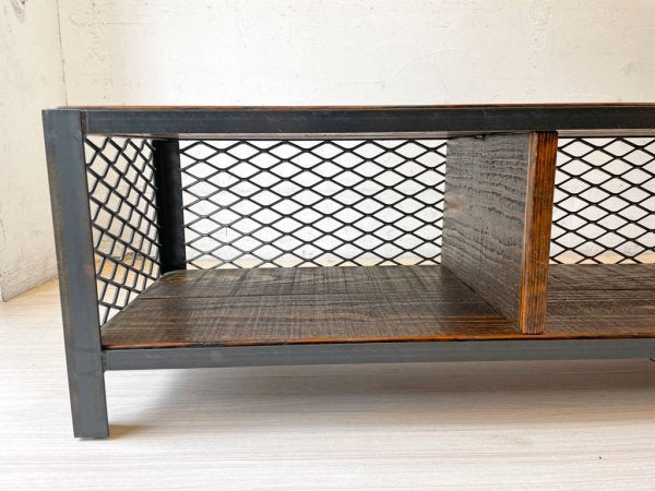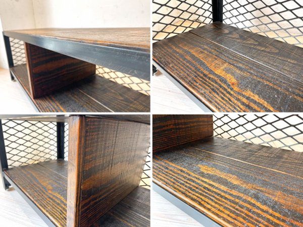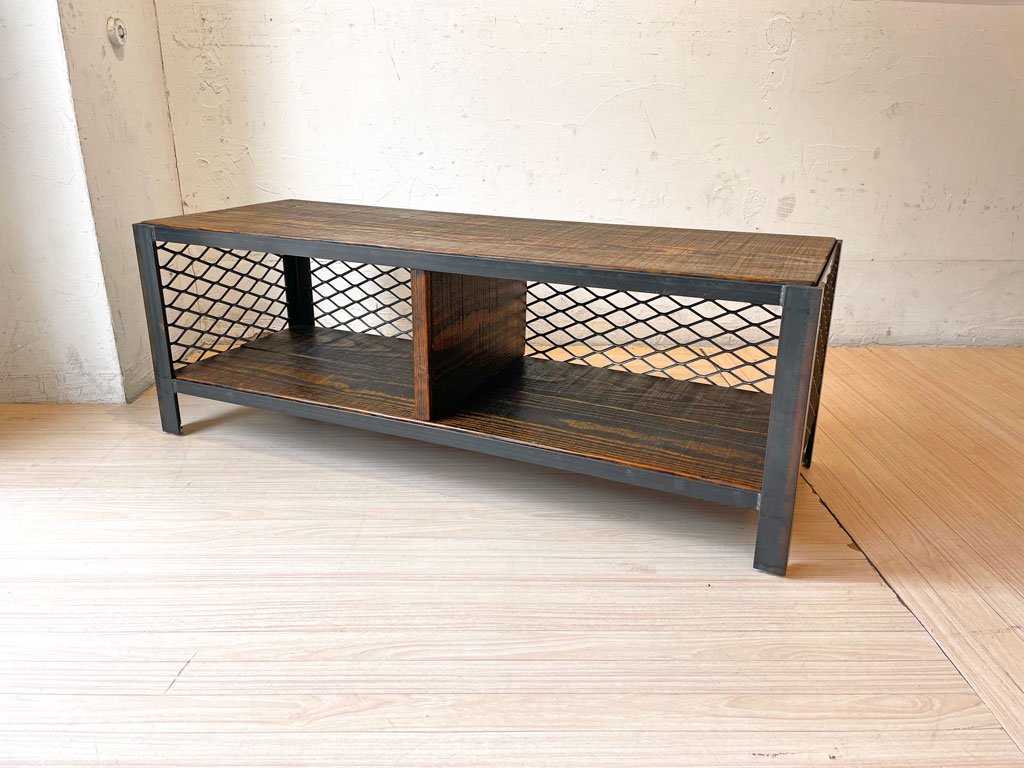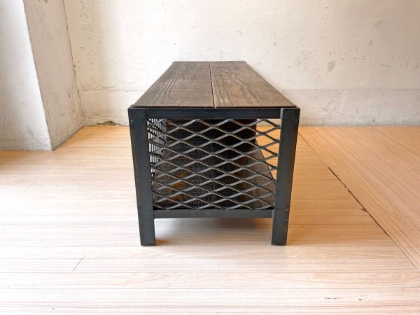 インダストリアル デザイン AVボード アイアンメッシュフレーム×パイン無垢材 エイジング加工
