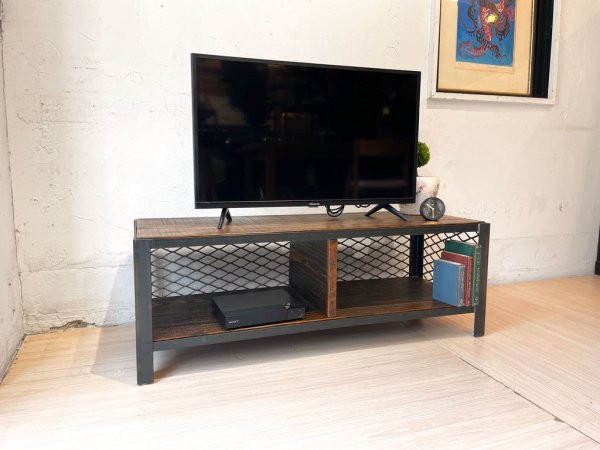 インダストリアル デザイン AVボード アイアンメッシュフレーム×パイン無垢材 エイジング加工 ブルックリンスタイル ★