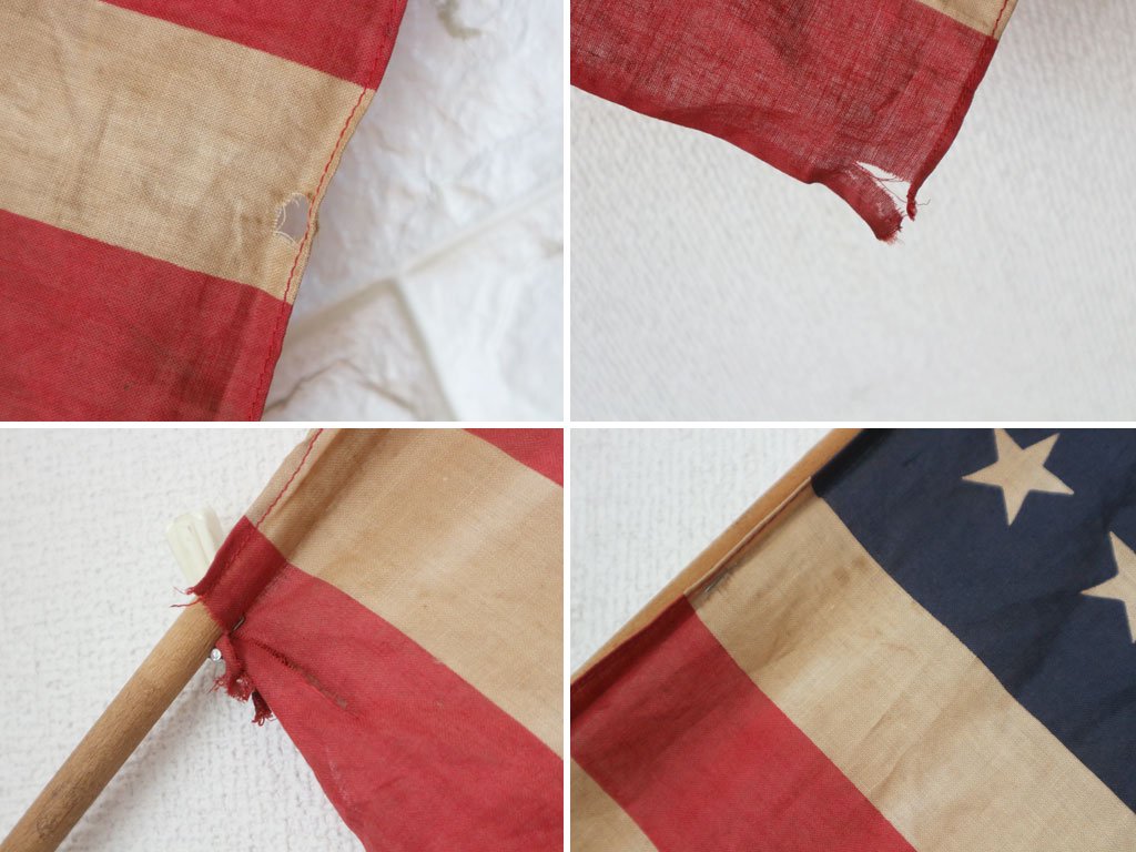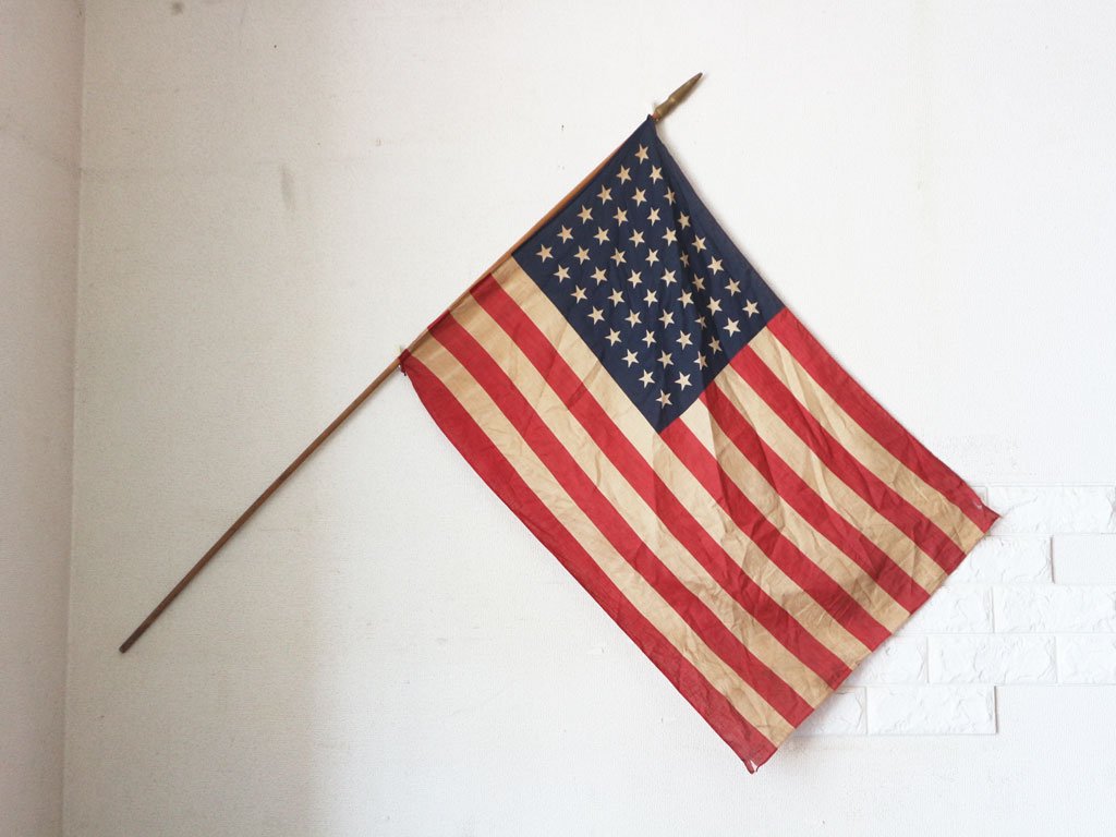 US ビンテージ アメリカ 星条旗 48スター 1912年~1959年 木製ポール 付き 国旗 ◎