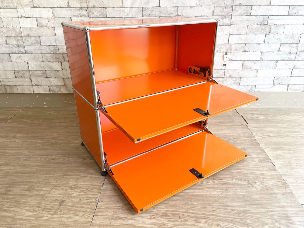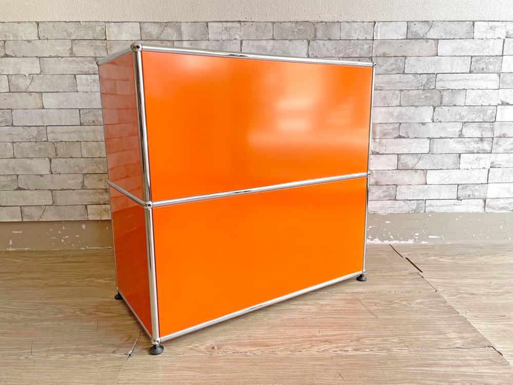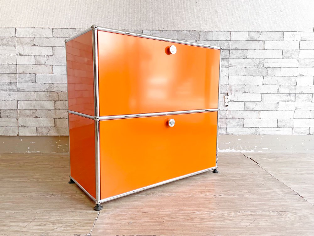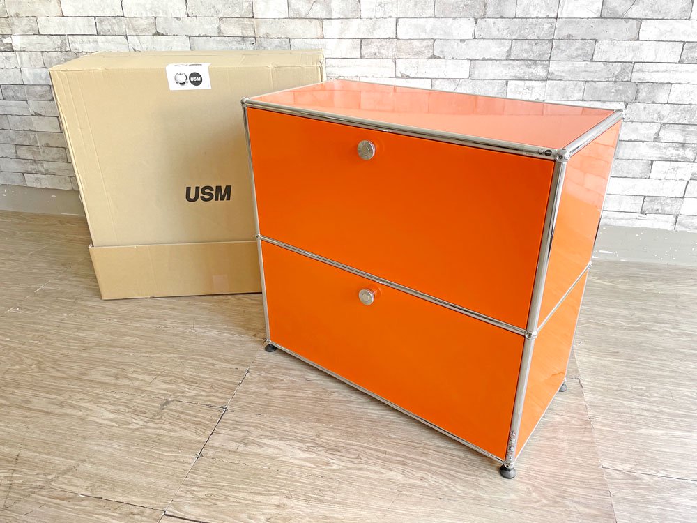 ユーエスエムハラー USM Haller モジュラーファニチャー ハラーシステム キャビネット 1列2段 W77 オレンジ ドロップダウンドア ソフトオープン / クローズ 展示品 箱付き ●
