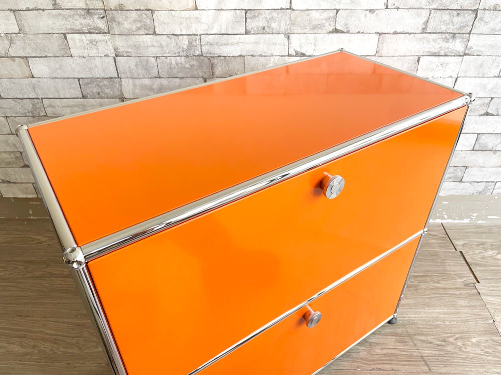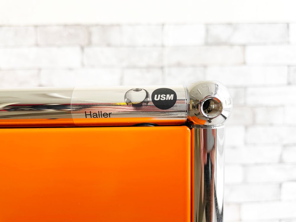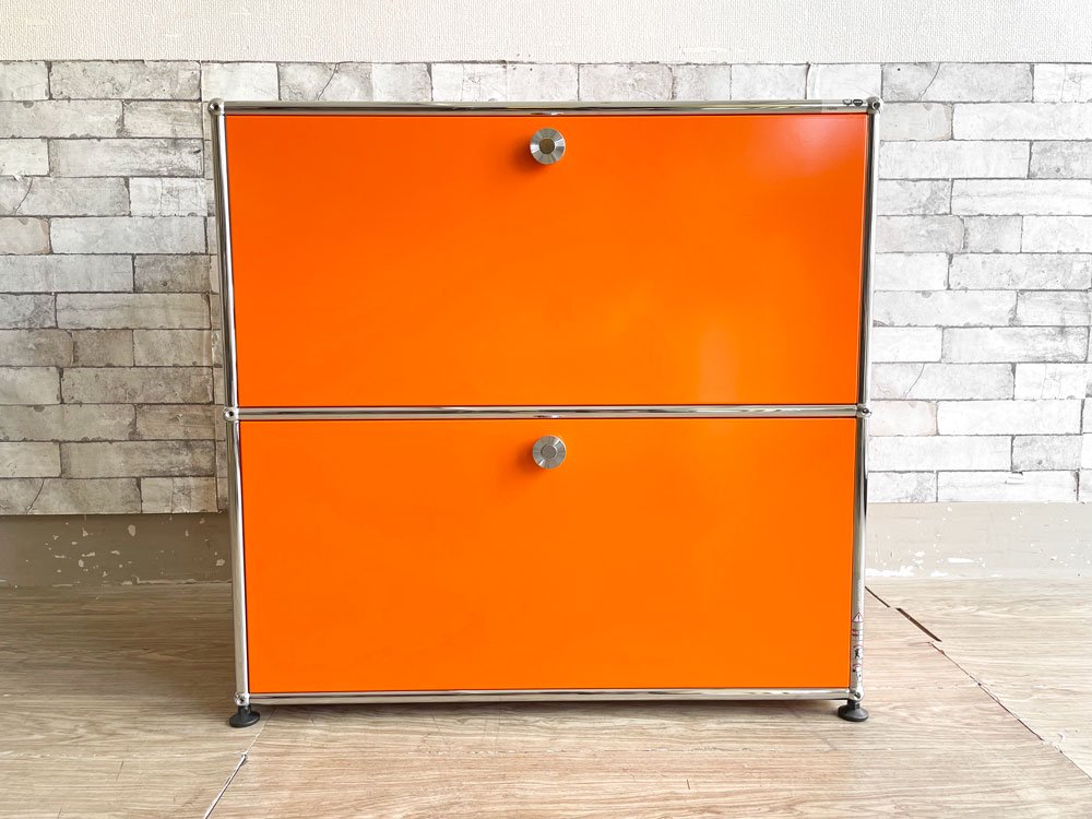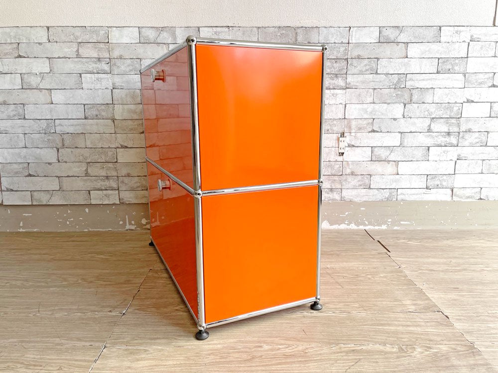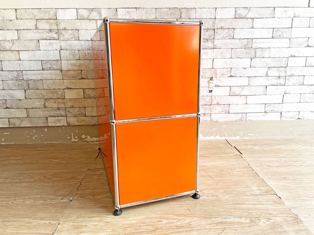 ユーエスエムハラー USM Haller モジュラーファニチャー ハラーシステム キャビネット 1列2段 W77 オレンジ ドロップダウンドア ソフトオープン / クローズ 展示品 箱付き ●