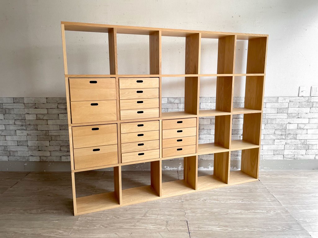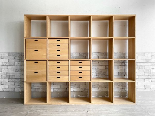 無印良品 MUJI スタッキングシェルフ オーク材 4段5列 オープンシェルフ ブックシェルフ 本棚 飾り棚 シンプル ナチュラル 引き出し×5 定価¥84,750- ●