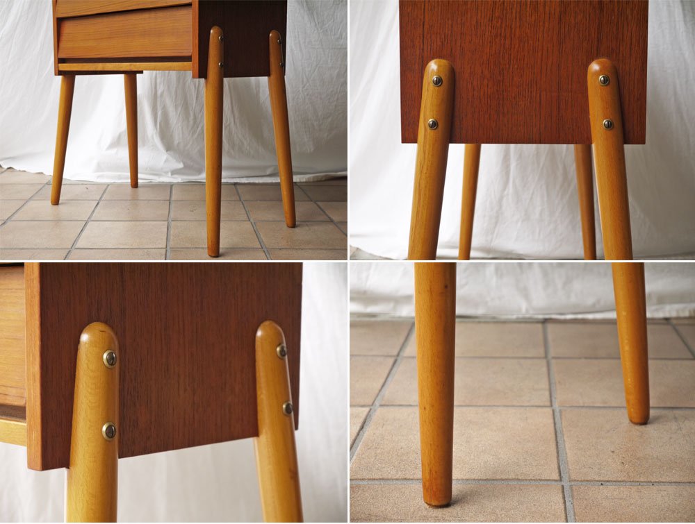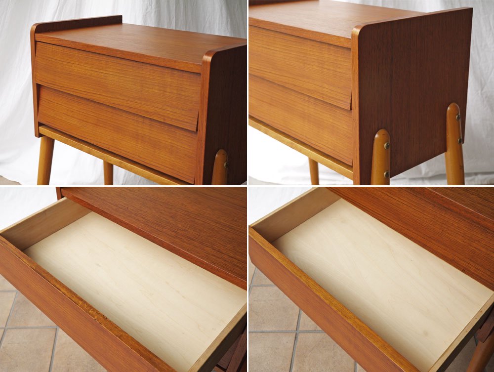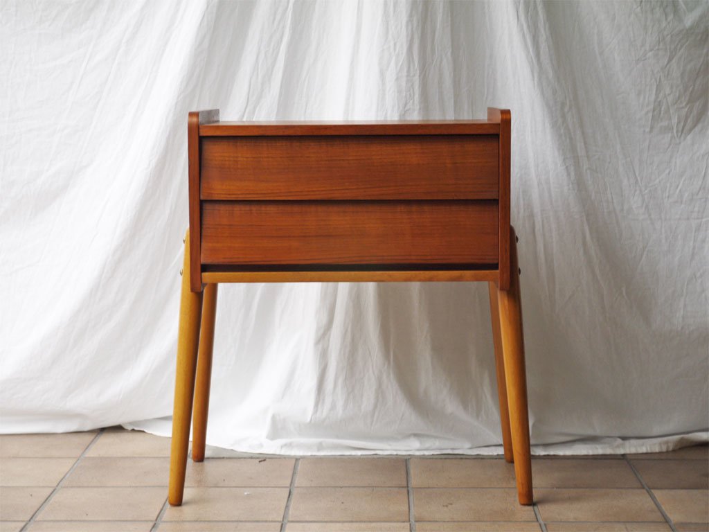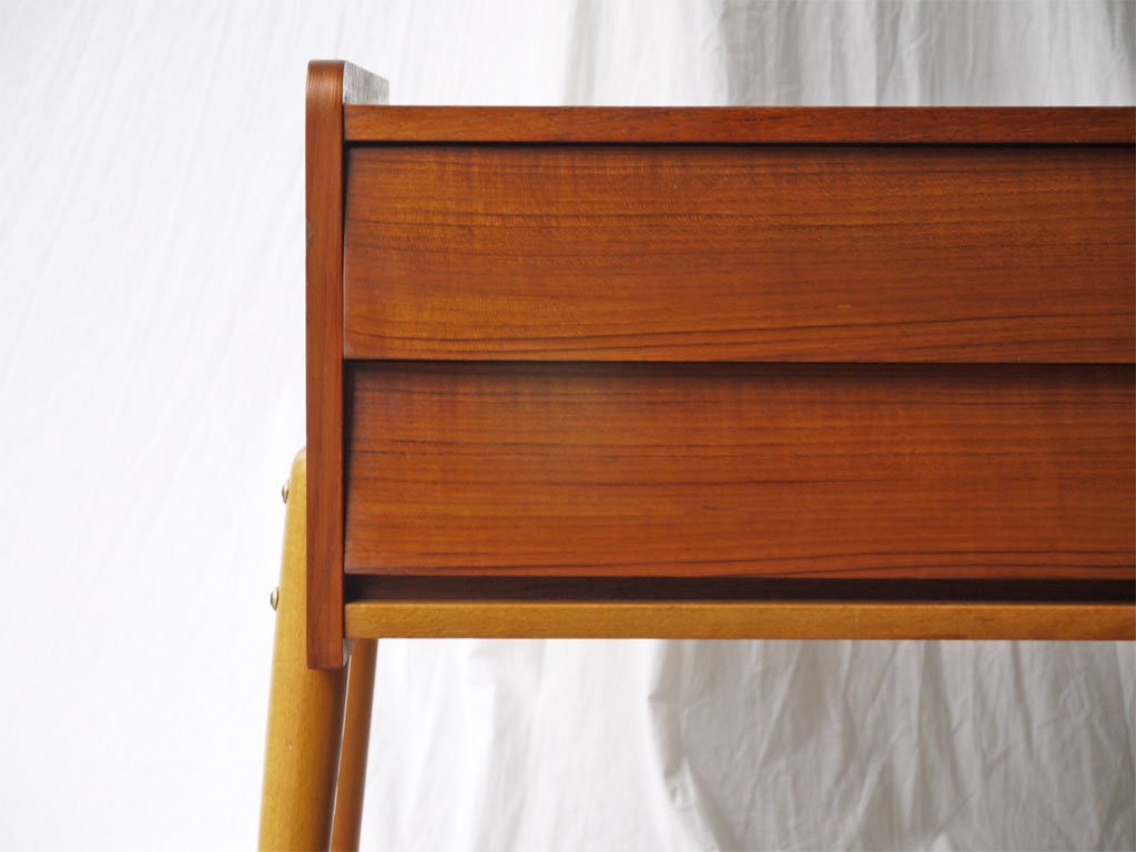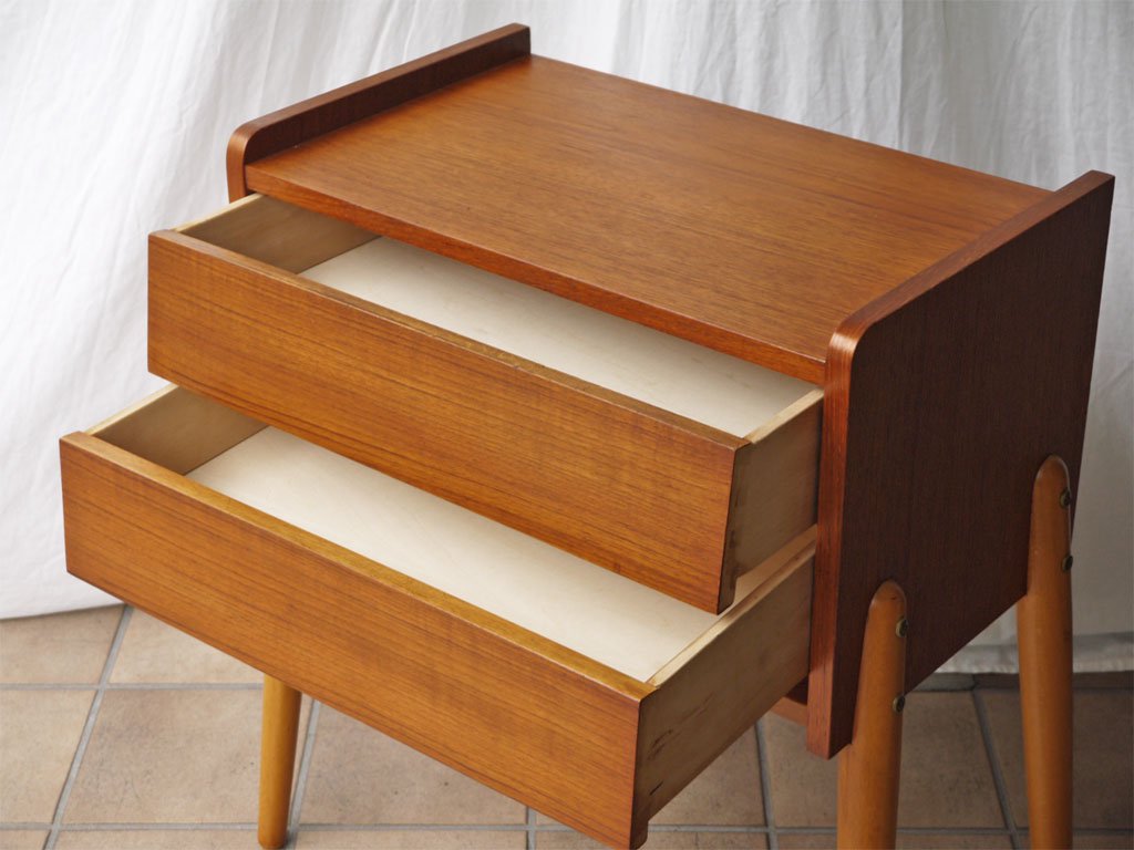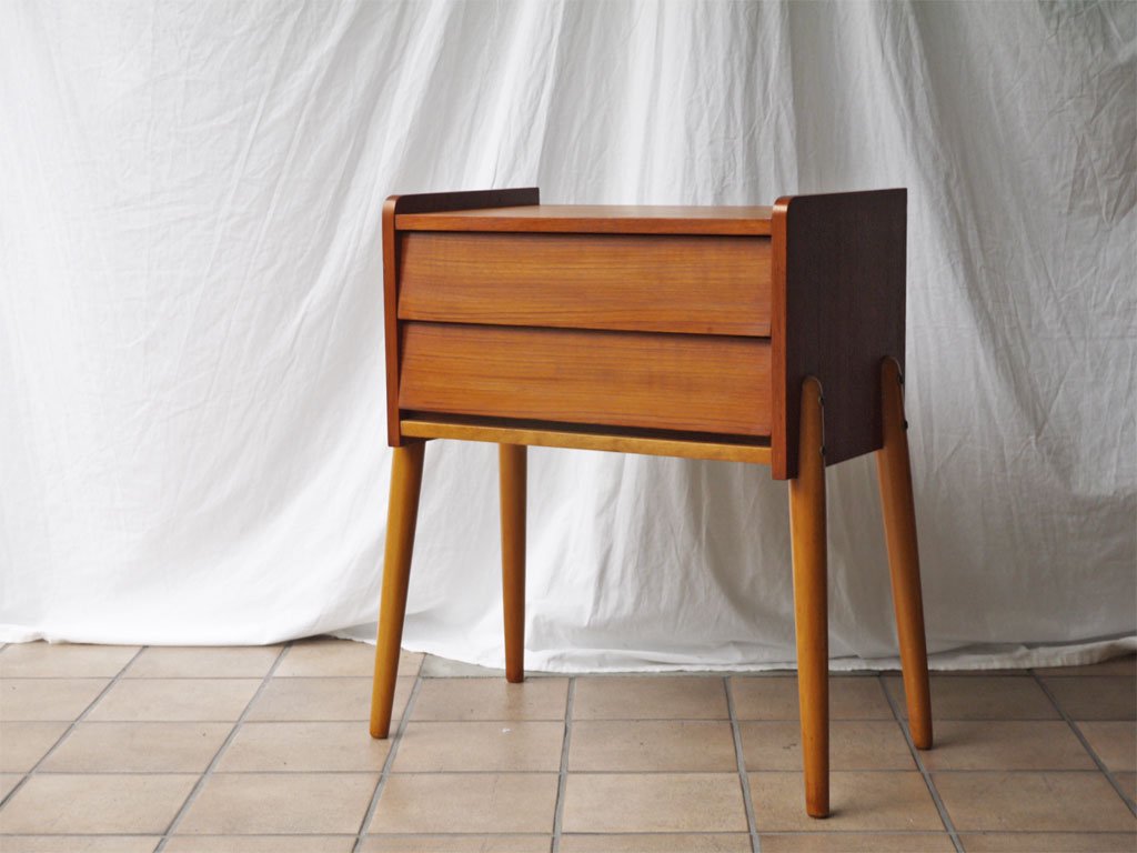 スウェーデン ビンテージ Swedish Vintage チーク×ビーチ材 サイドチェスト 2ドロワー サイドテーブル 北欧家具 ◇