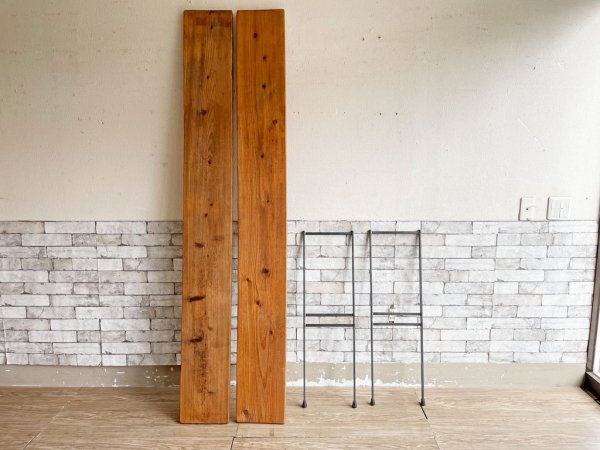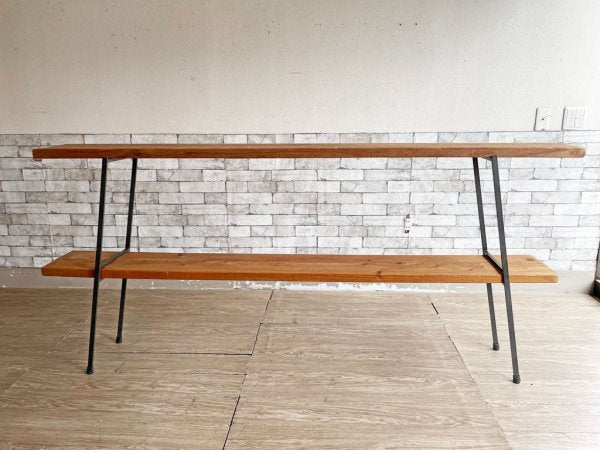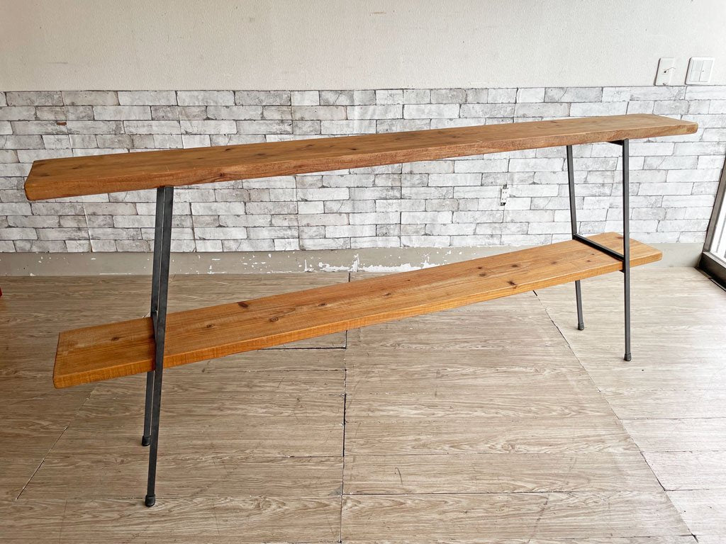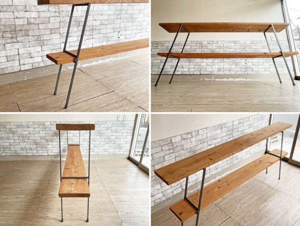 こちらは、杉板とアイアン脚を組み合わせたディスプレイシェルフです。