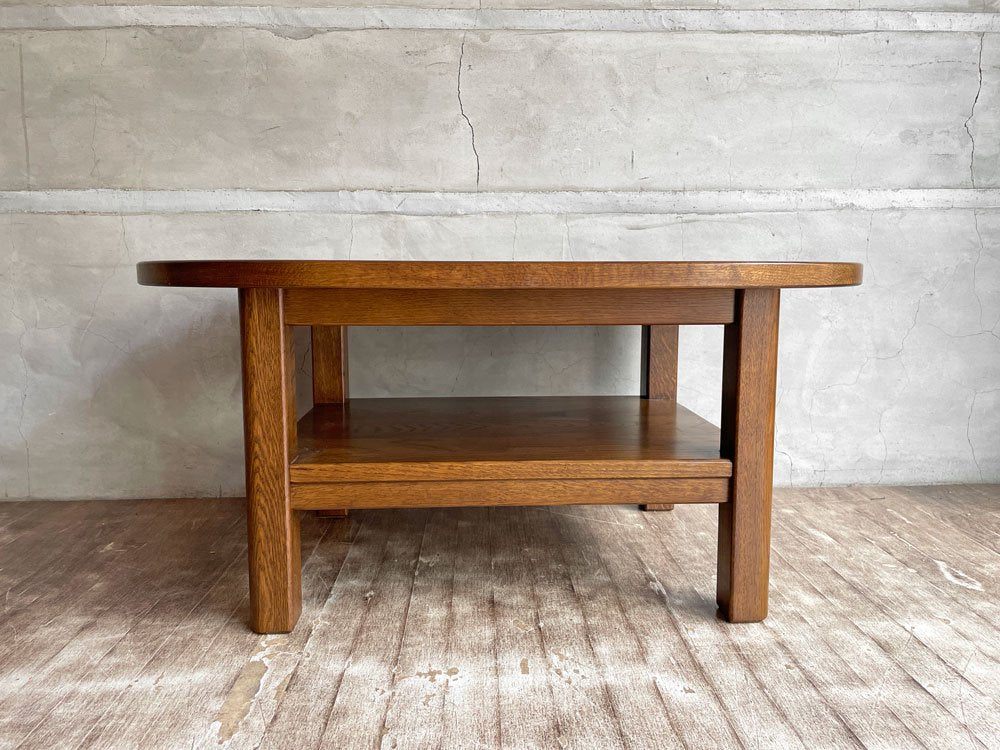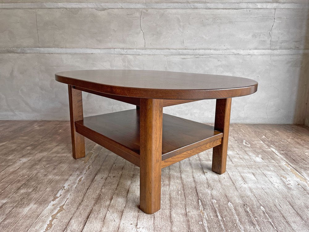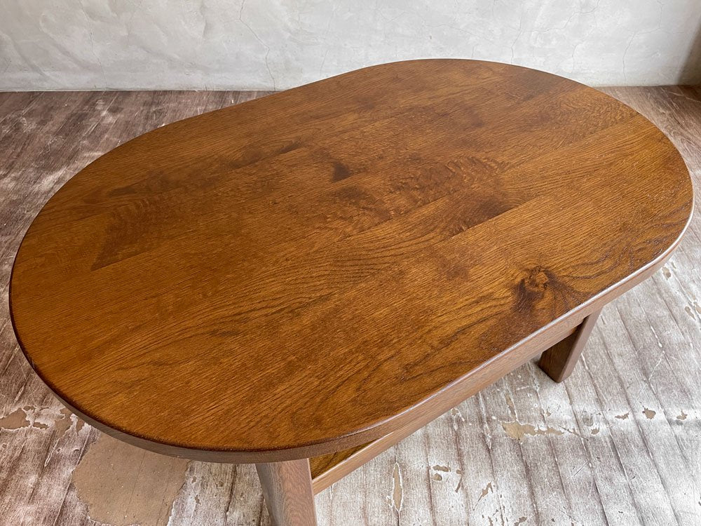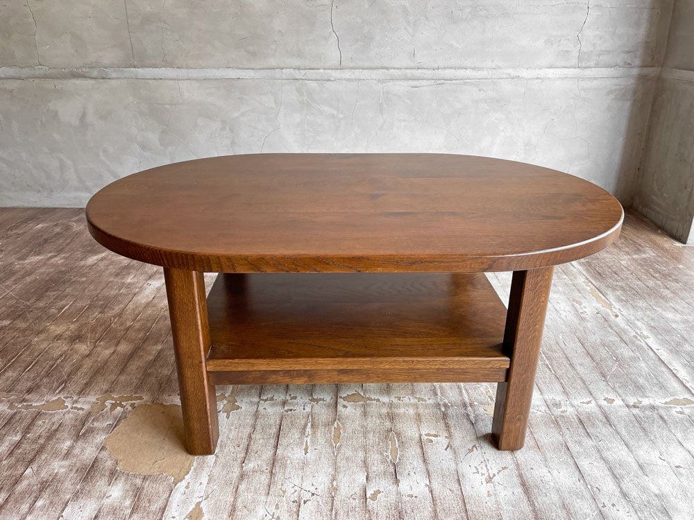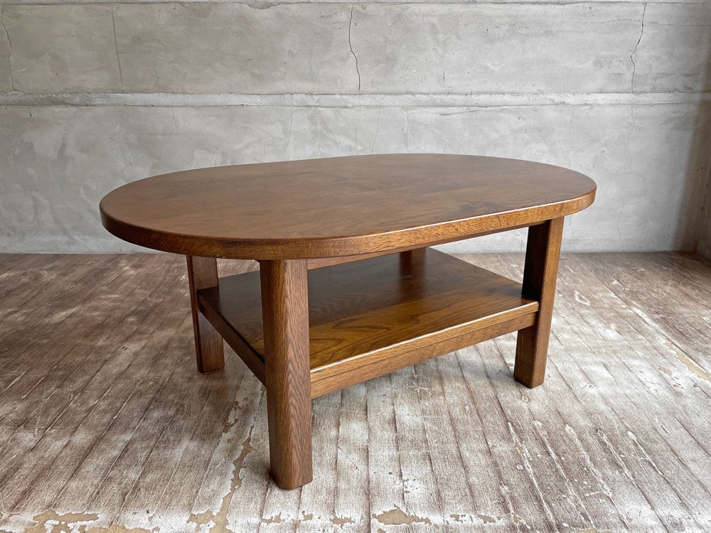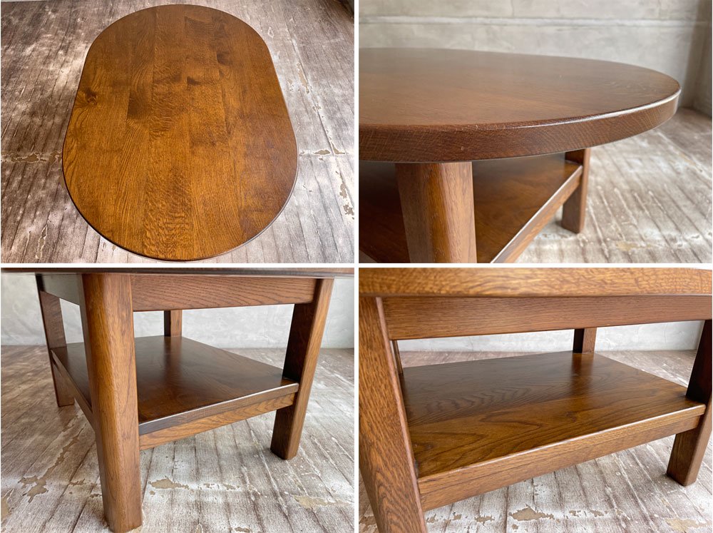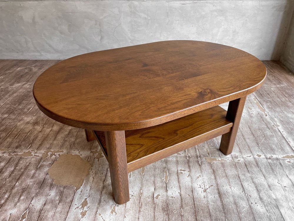 オーク材 無垢材 リビングテーブル センターテーブル ローテーブル コーヒテーブル オーバル型 ラック付き 木味♪