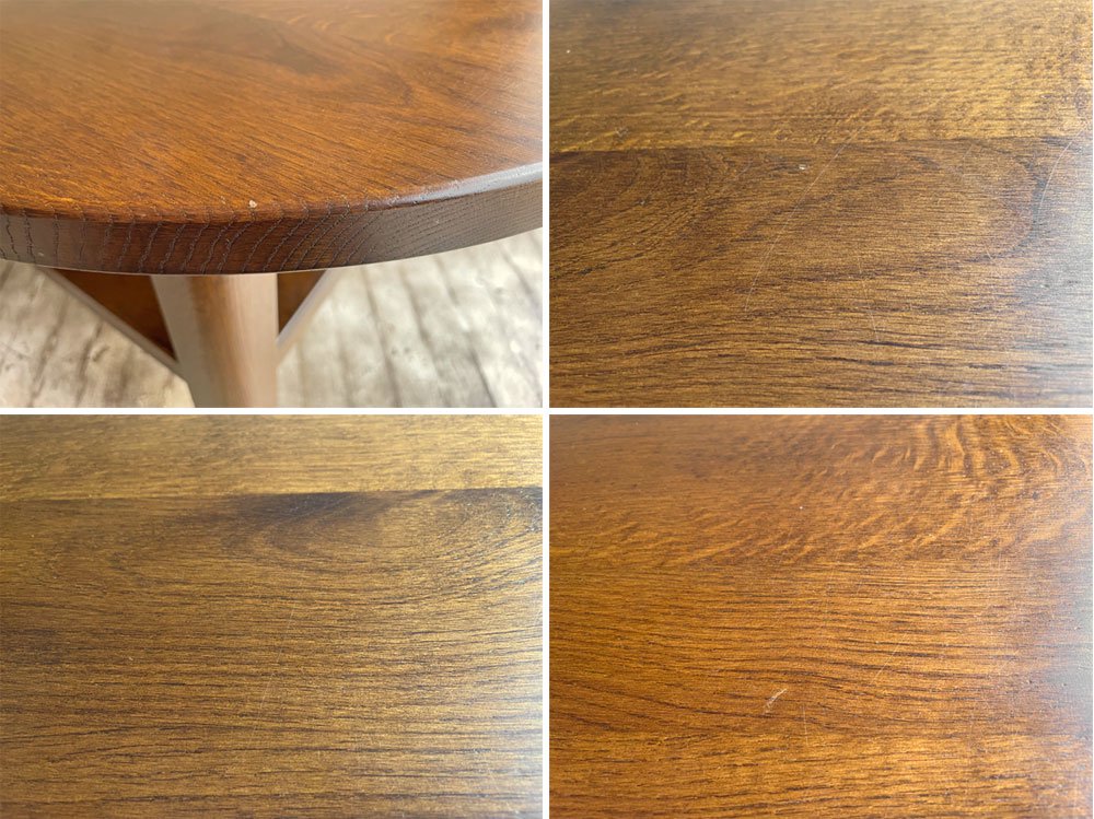 深い焦げ茶色とオーク材の細かな杢目が存在感のあるこちらのテーブル。
