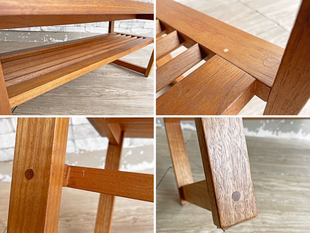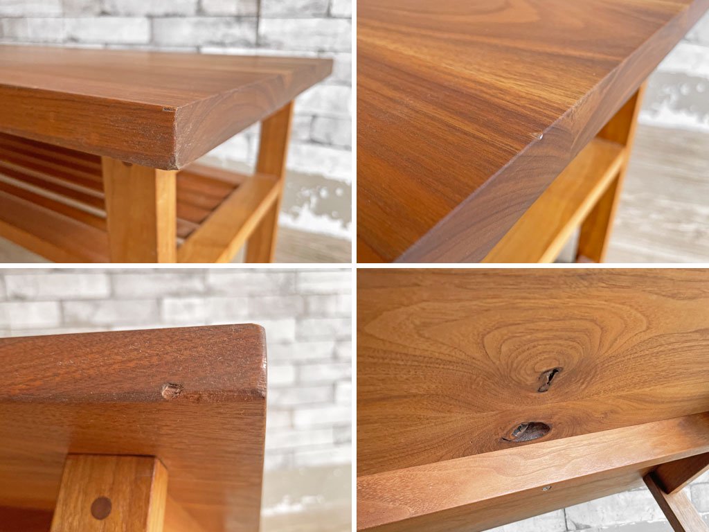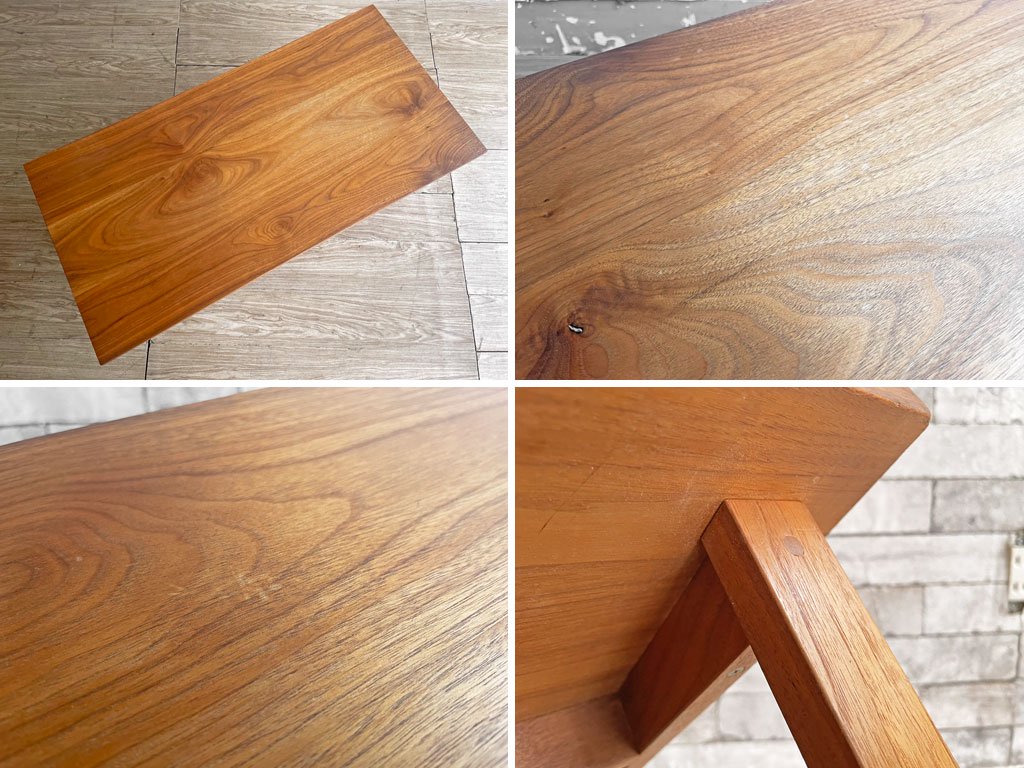 使用に伴う擦れや打痕、うっすらとしたヤケ、角傷、染み等がございますが大きく目立つものではございません。天面は弊社工房にてサンディングを行っておりますので、今後とも気持ちよくお使い頂けるコンディションを保っております。