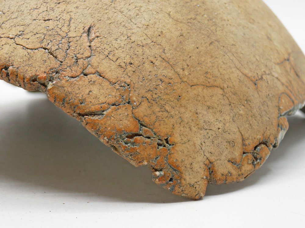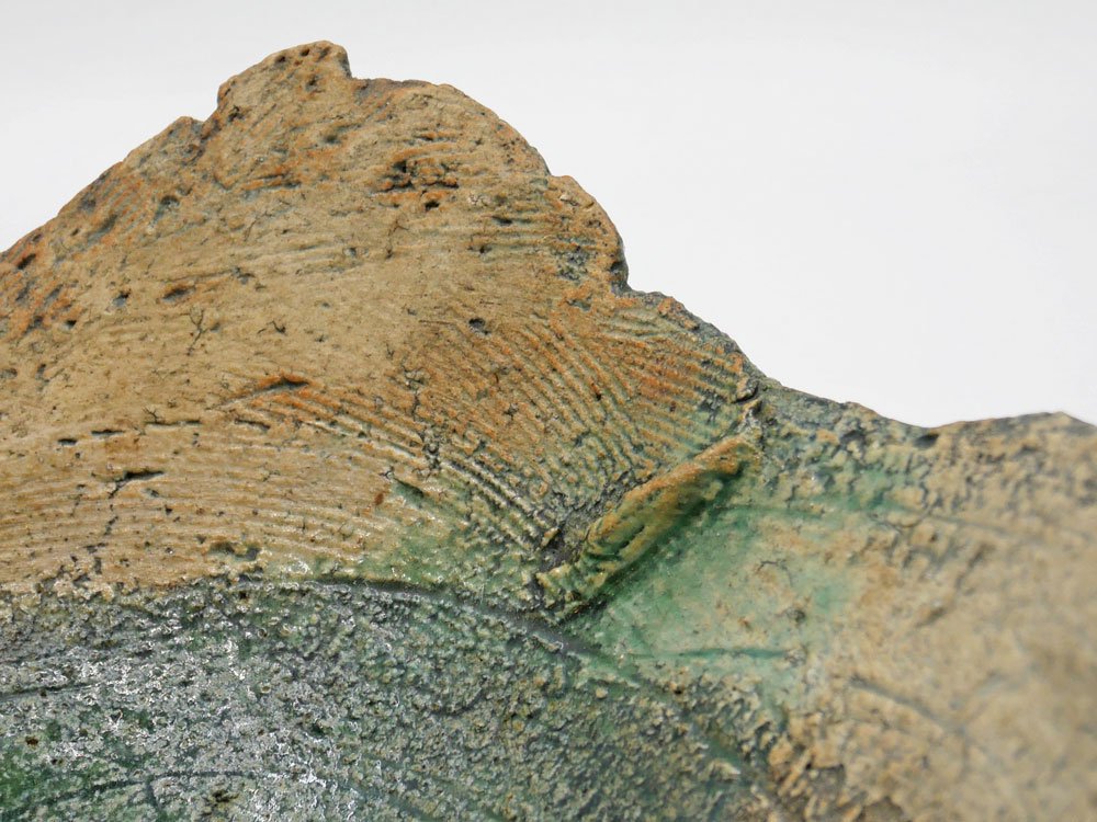 土の荒々しい表情と大胆に湾曲したフォルムがインパクトある一点。