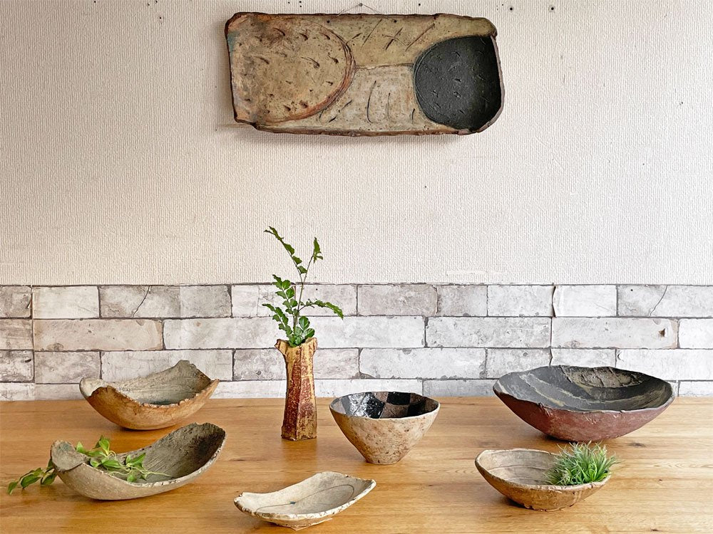 化粧土を用いて生み出される多彩な表情と土器のようなプリミティブな質感は、飾っておくだけでも目を楽しませてくれます。