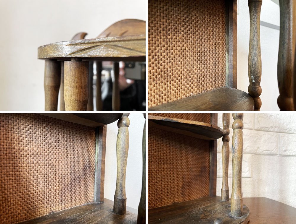 こちらは、ビンテージのお品物です。最上部の装飾はややぐらつきがございます。また一部スポークの接着が緩んでいる箇所がございますが、現状ご使用には問題はないかと思われます。