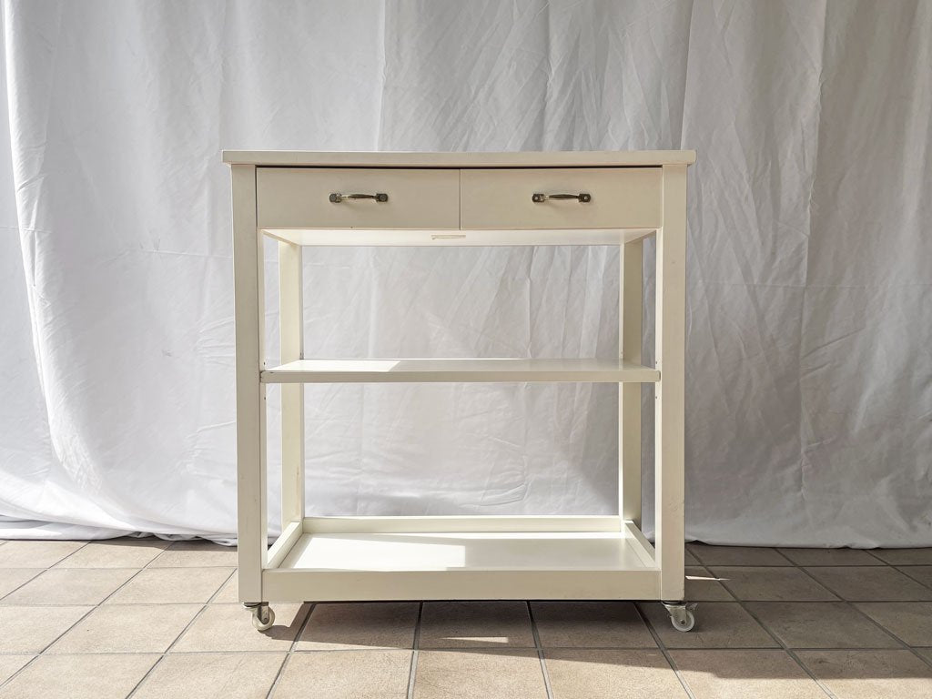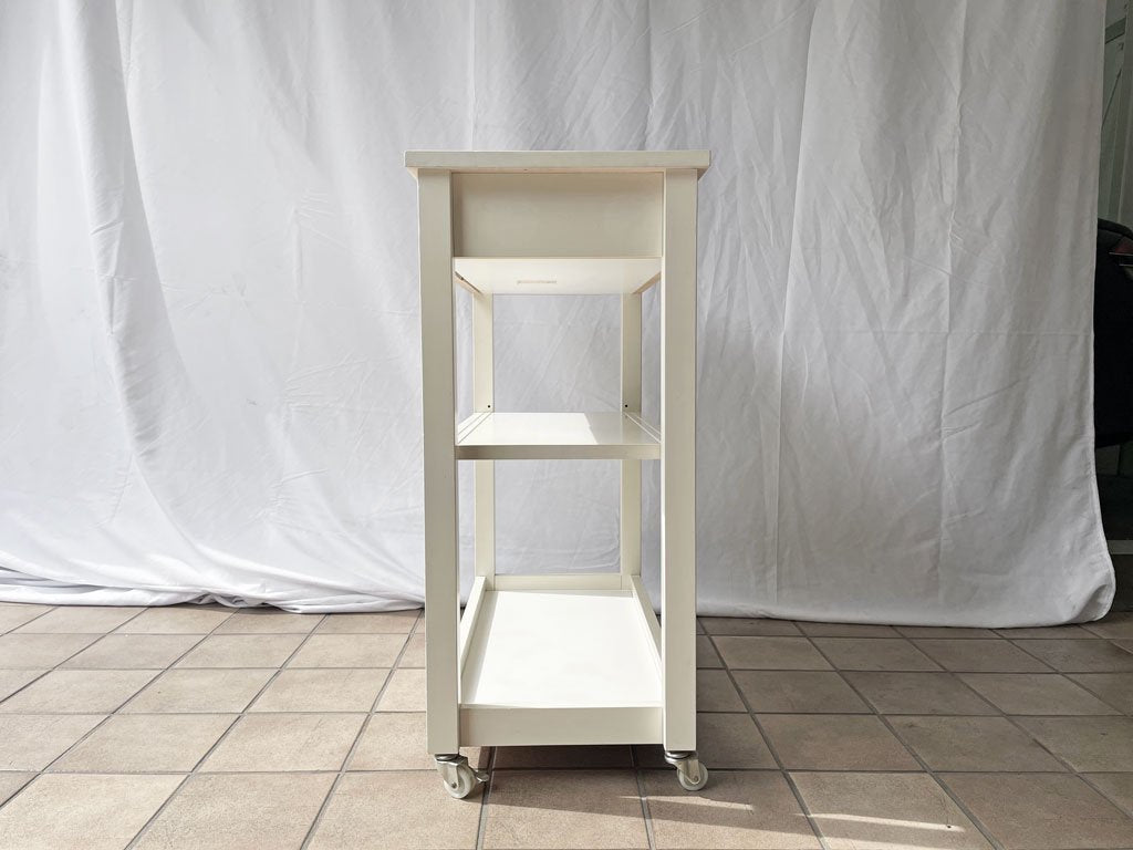 カトラリー等の小物を収納できる引き出し2杯にオープンスペースも2段備え使い勝手も抜群。可動性の良いキャスター付きで配膳時にも活躍してくれそうです。