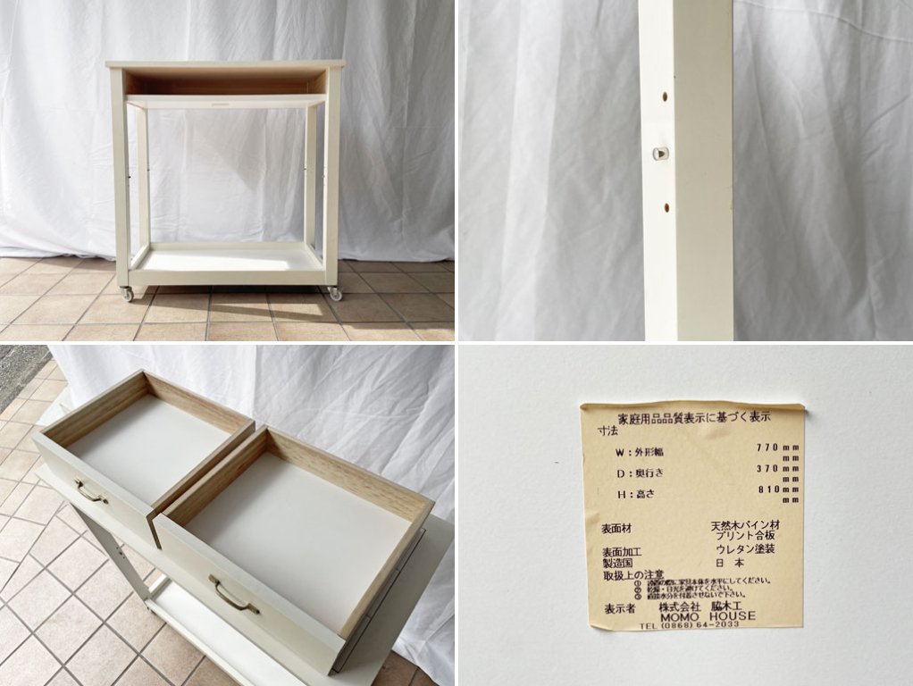 モモナチュラル MoMo natural ランド LAND タイルトップ キッチンワゴン パイン材 キャスター付き ホワイト ◇