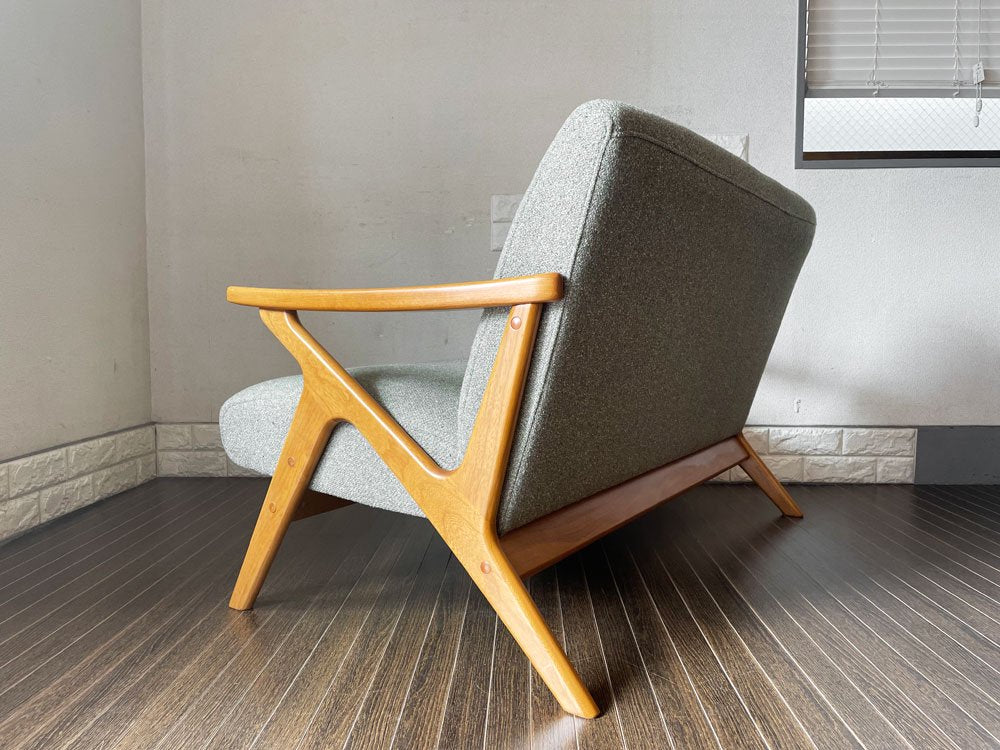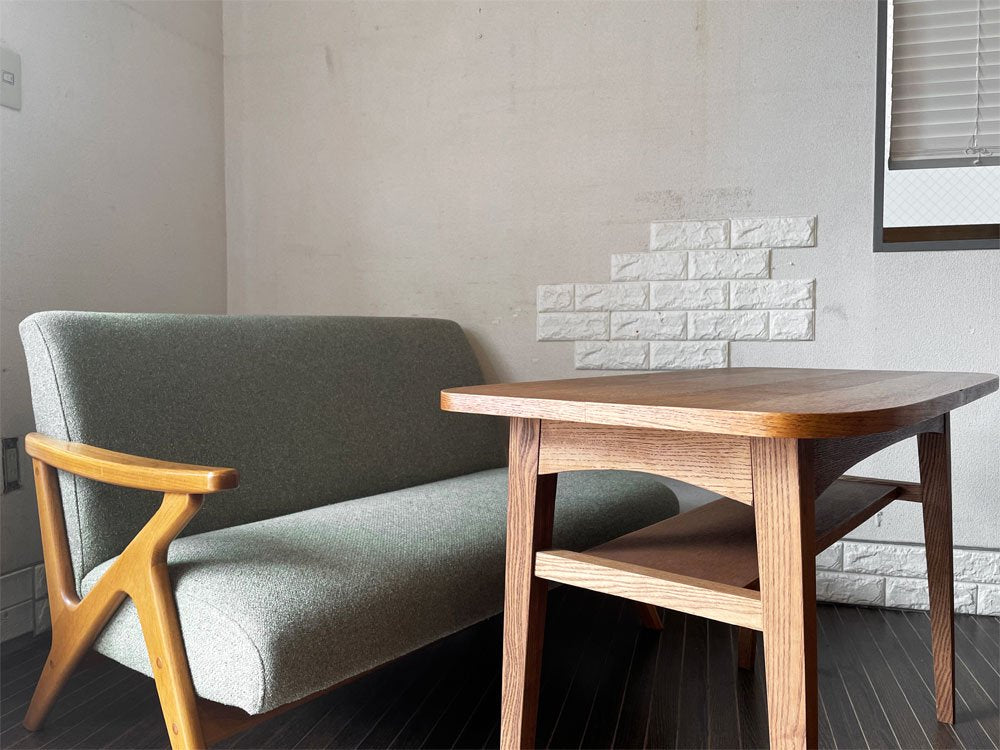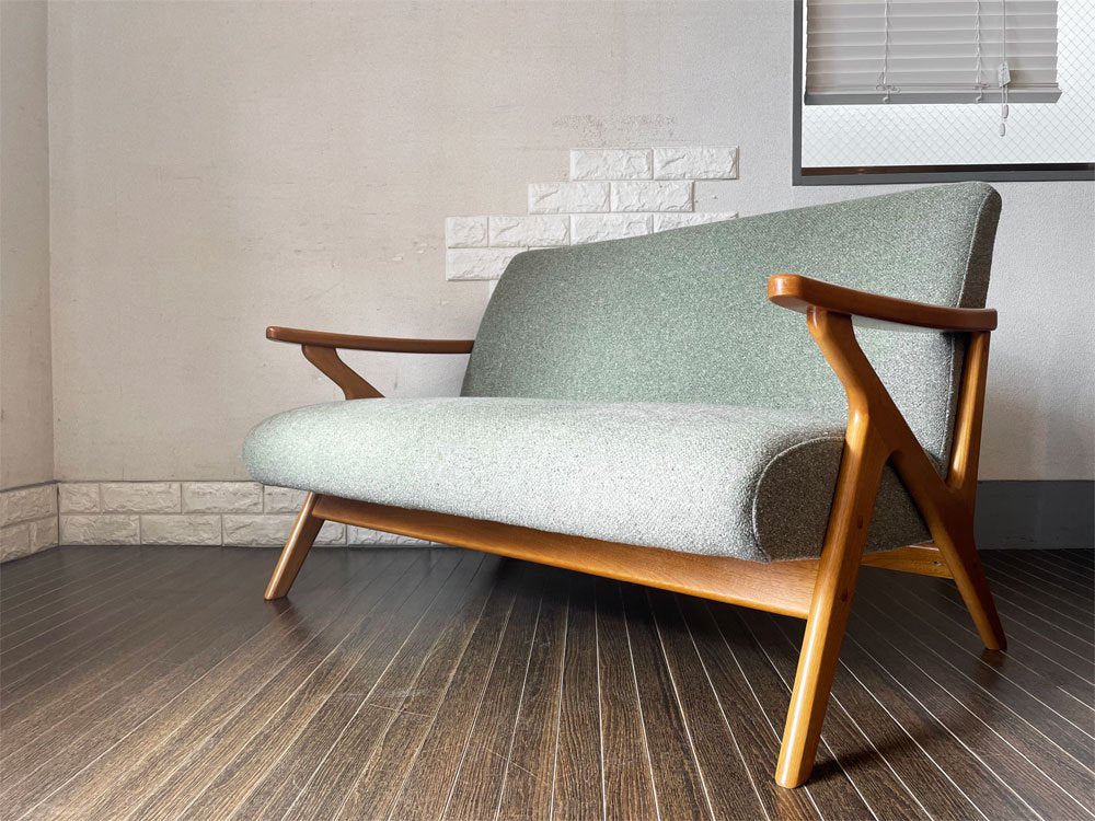 今回は、グリーン系のミックスファブリックをまとった2人掛け仕様。コンパクトなサイズ感が、1~2人暮らしのお部屋に最適です。