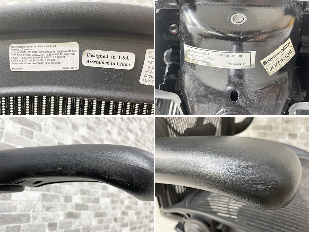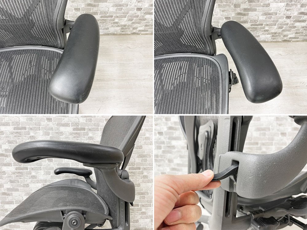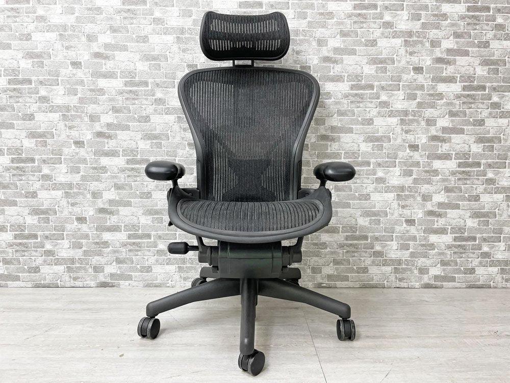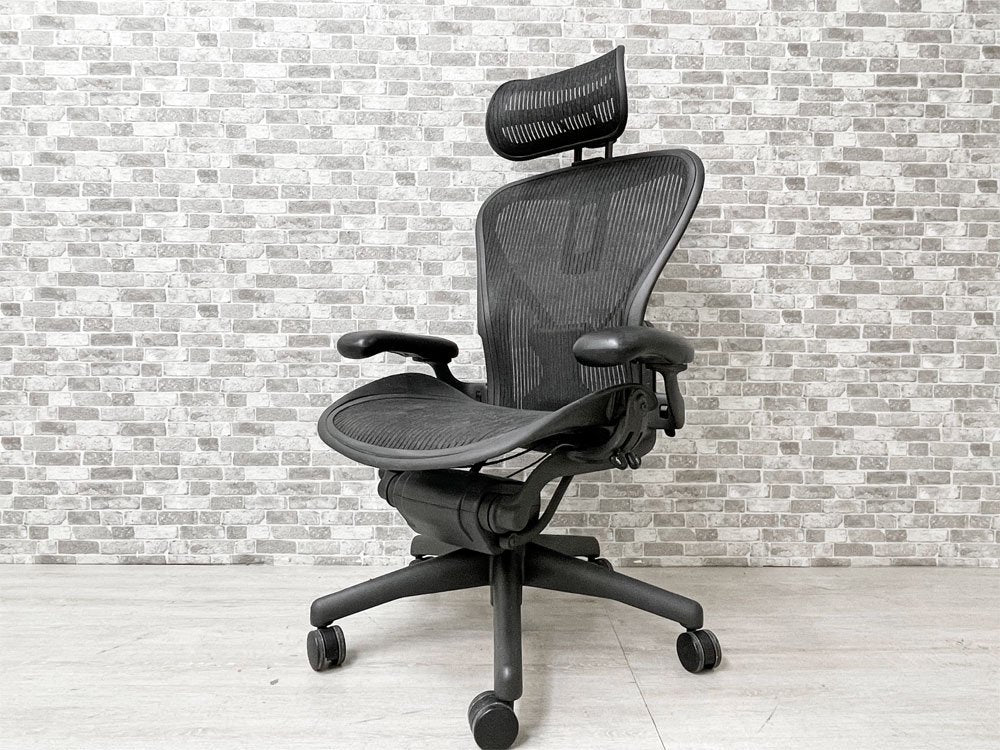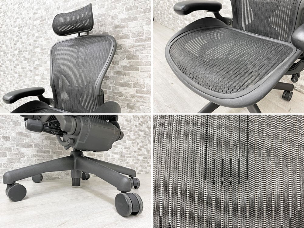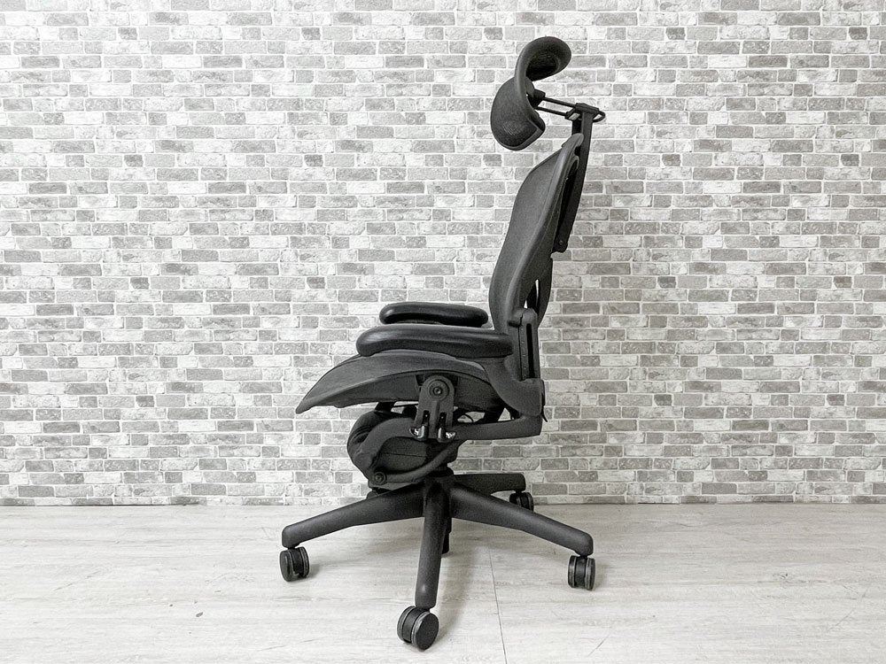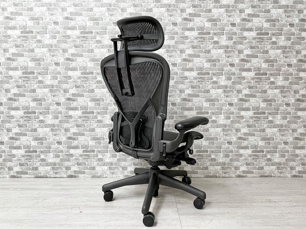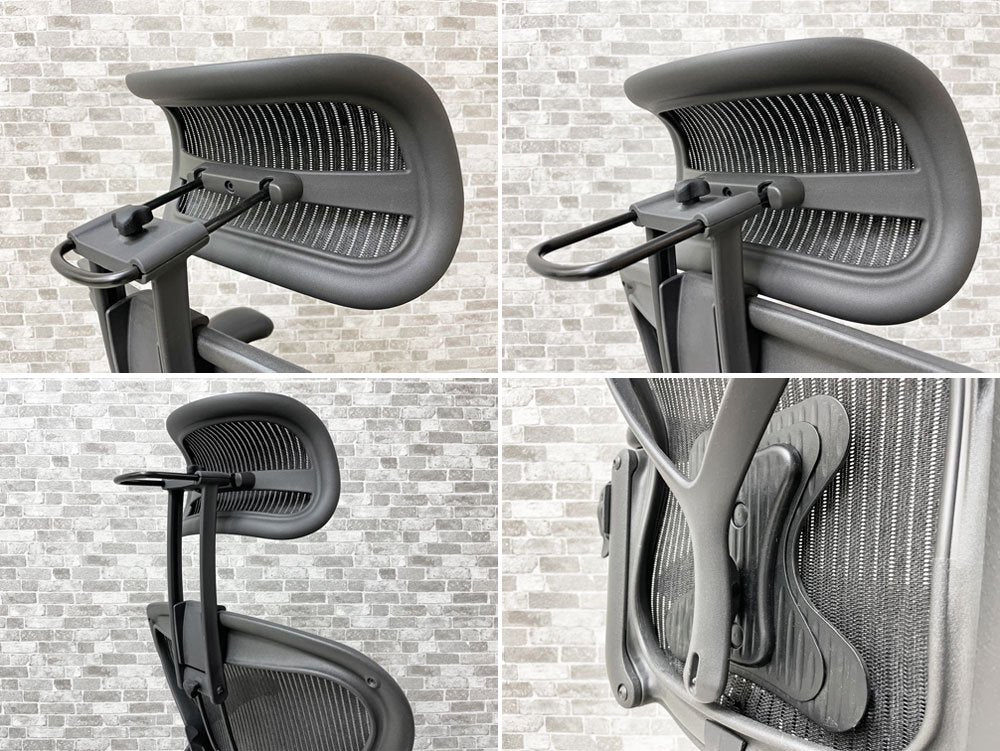 ハーマンミラー Herman Miller アーロンチェア Bサイズ ヘッドレスト付き ポスチャーフィット グラファイトベース フル装備 ビル・スタンフ&ドン・チャドウィック ●