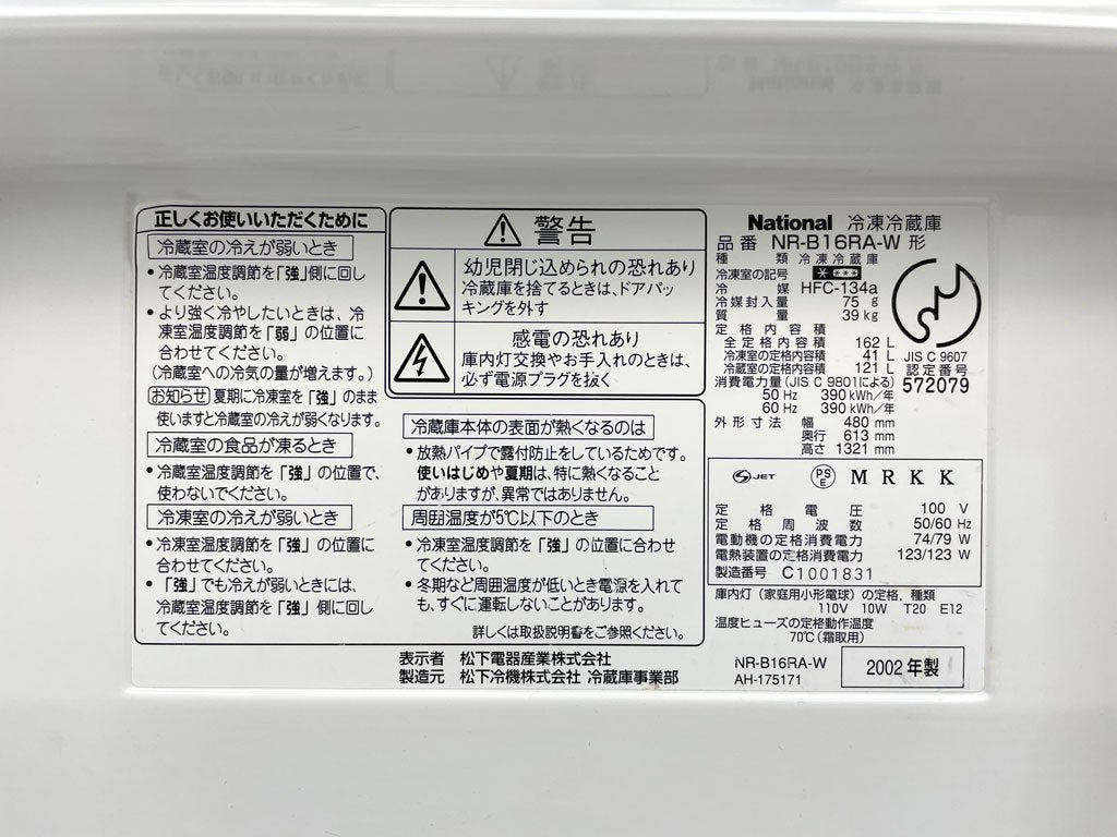 ナショナル National ウィル WiLL FRIDGE mini パーソナルノンフロン冷凍冷蔵庫 フリッジミニ ホワイト 廃番 2002年製 162L オリジナル ノスタルジックデザイン ●