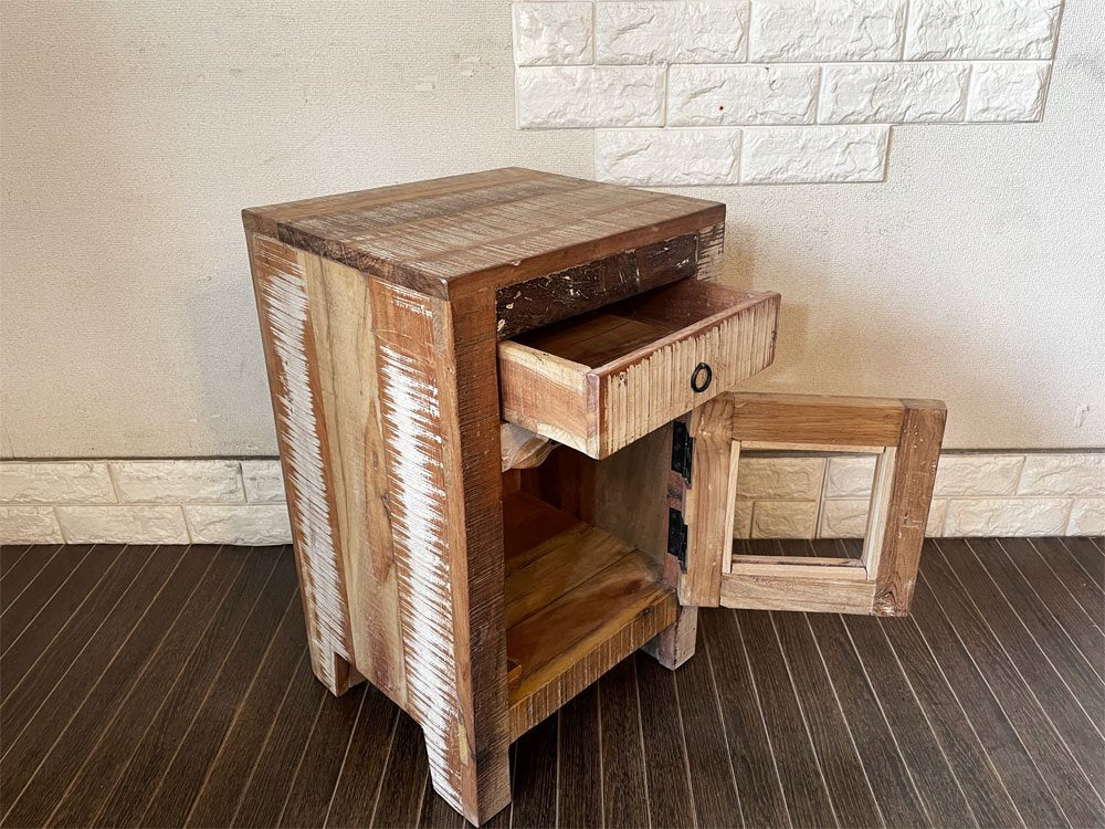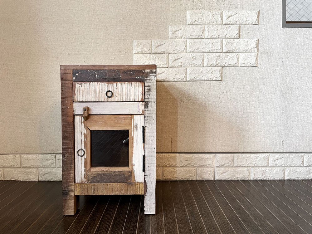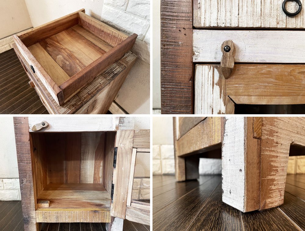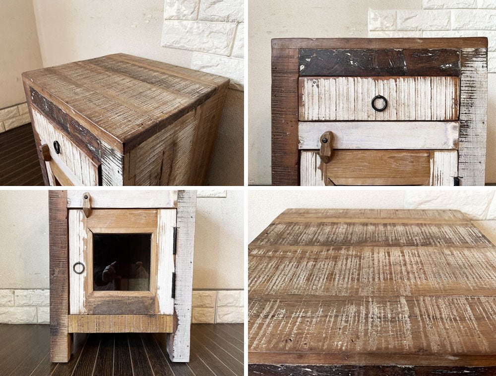 こちらは、古材を活かした「ドリュー | DREUX」シリーズのスモールキャビネット。