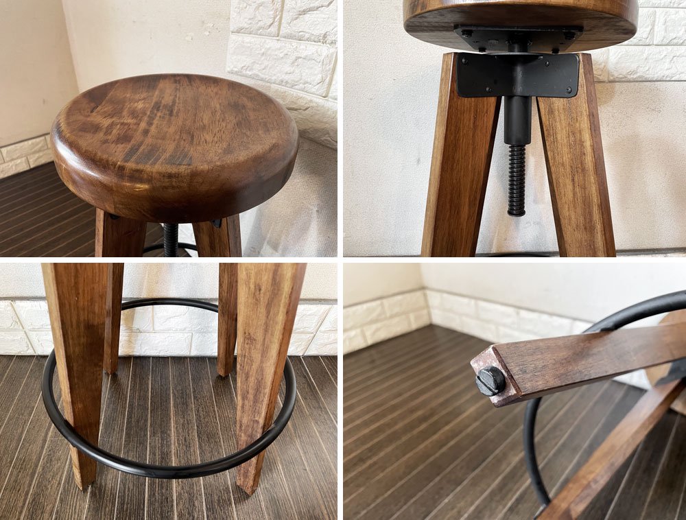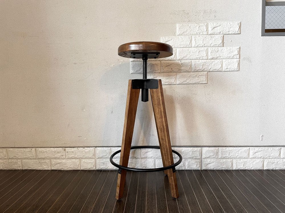 ジャーナルスタンダードファニチャー j.s.F シノン CHINON ハイスツール ウッド カウンターチェア 座面回転昇降 インダストリアル 廃番 ◎