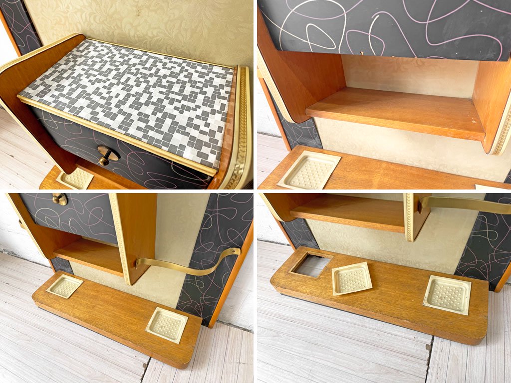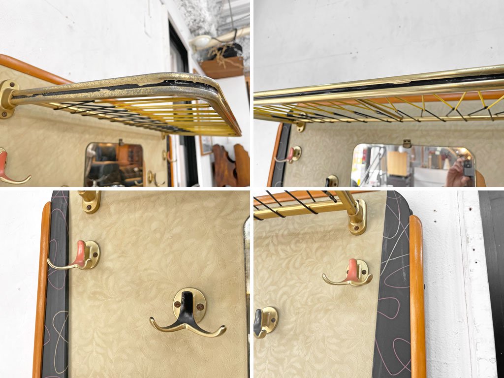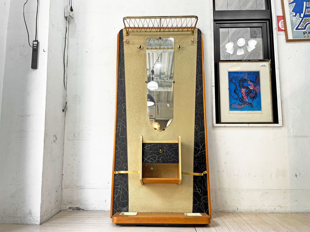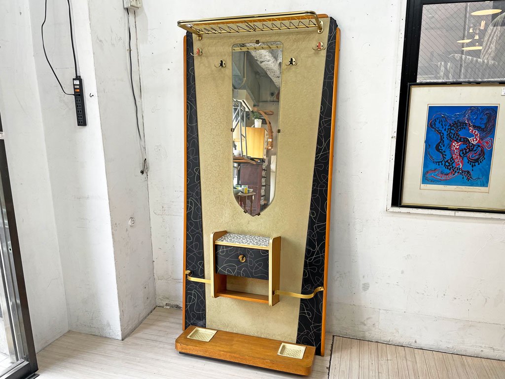 USビンテージ ホールスタンド ミラー付き コートハンガー 傘立てアンブレラスタンド ラック 上棚 小型収納付 ミッドセンチュリー 店舗什器 希少 ★
