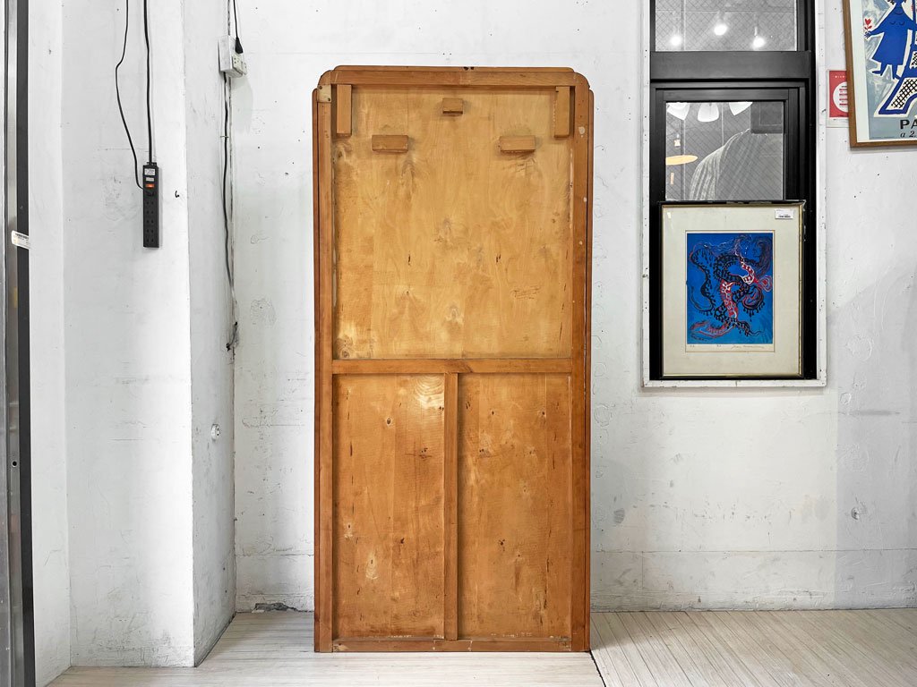 ウッドフレームの風合いも良く、ミッドセンチュリーを感じさせるエレガントな柄の布地やマテリアルボードといった装飾が、お部屋に華やかな雰囲気を演出します。上棚のバッグや靴などを置いておくのもオススメです。