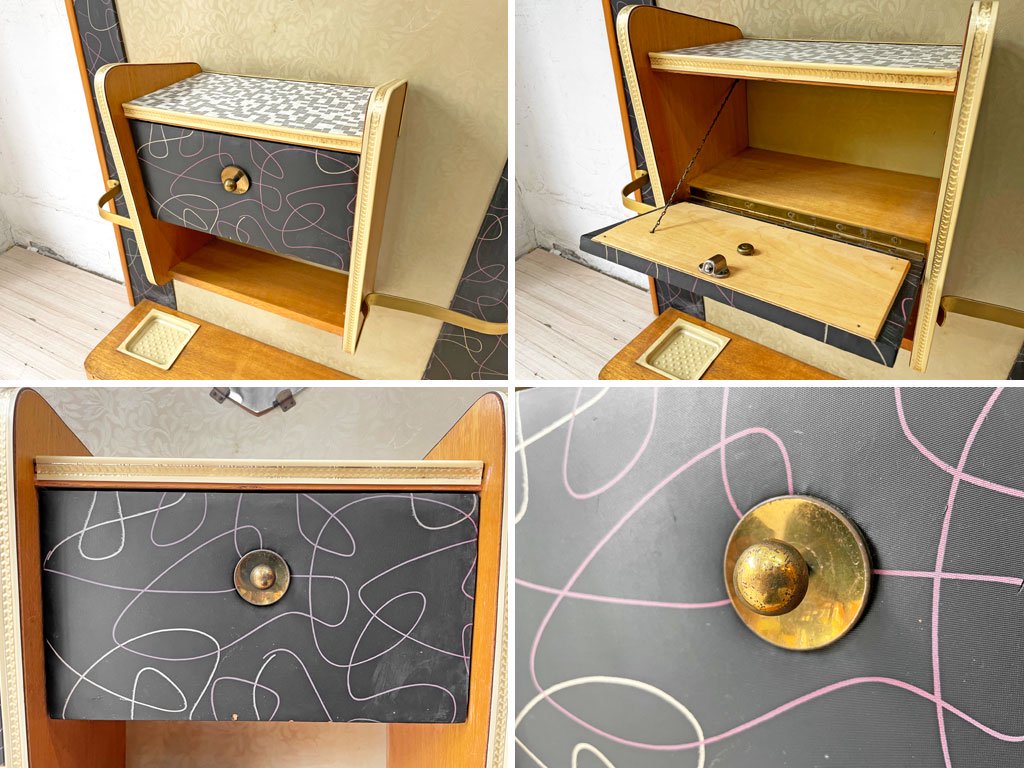 コチラのお品物はビンテージ品となります。使用・経年に伴う傷やスレ、汚れや張地の若干の破れなどがございます。また、ミラー全体にくすみが見られます。その他、傘立て皿が劣化しており、傷やヒビ、汚れなどがあり、傘を立てるなど衝撃を与えると破損する恐れがございます。傘立て皿はあくまで装飾の一部とお考え頂き、傘て立て皿の実用はお控えくださいませ。また、自立は致しますが、高さのあるお品物となり、転倒の恐れがございますので、ご使用の際は転倒防止の対策をしてご使用くださいませ。その他、大きく美観を損なるようなダメージなどもございません。ビンテージ品ならではの風合いをお楽しみ頂けるお品物となっております。