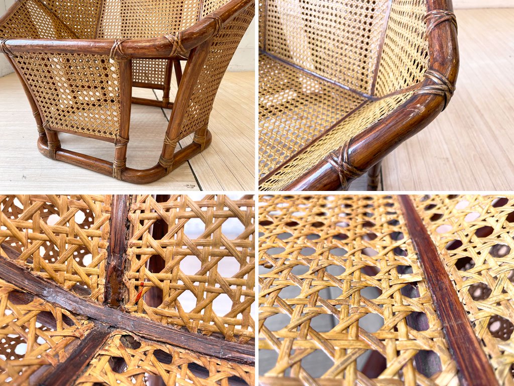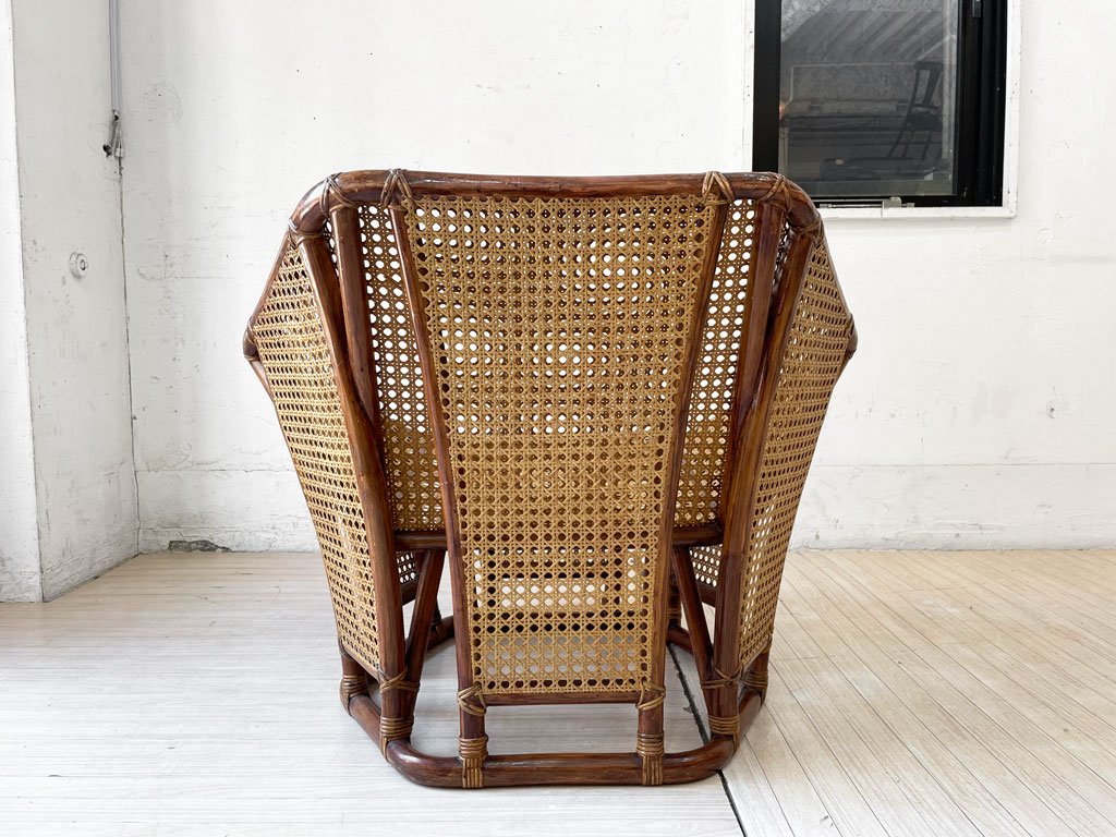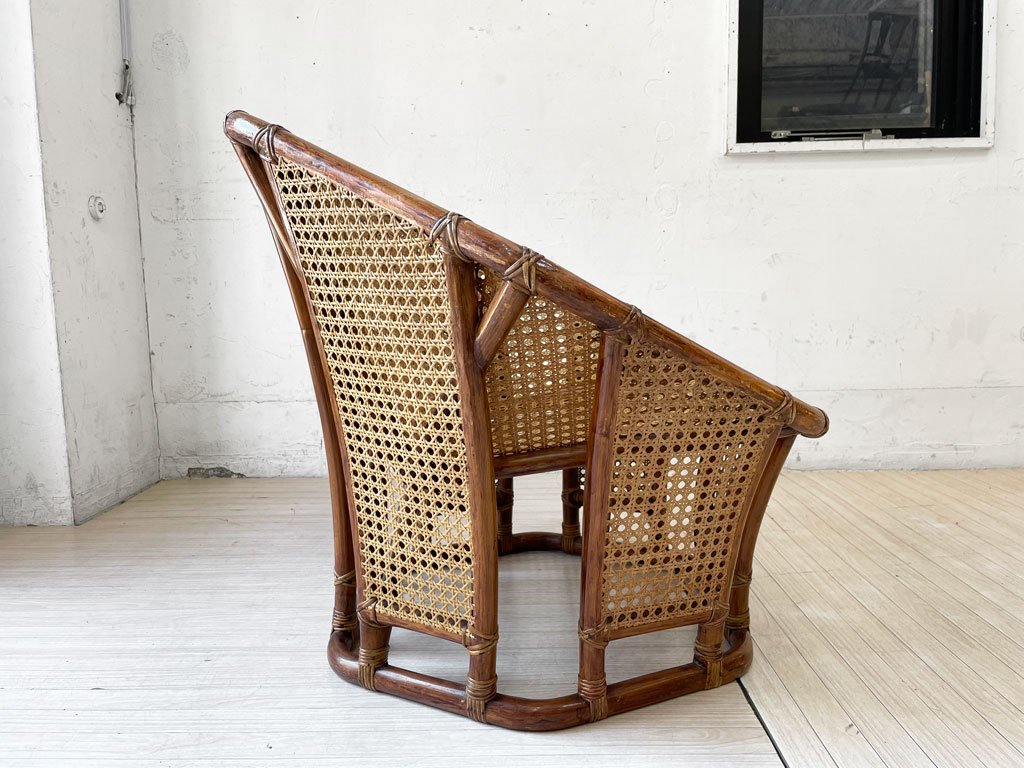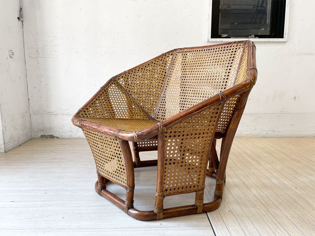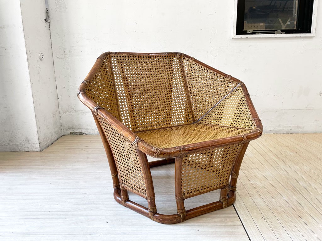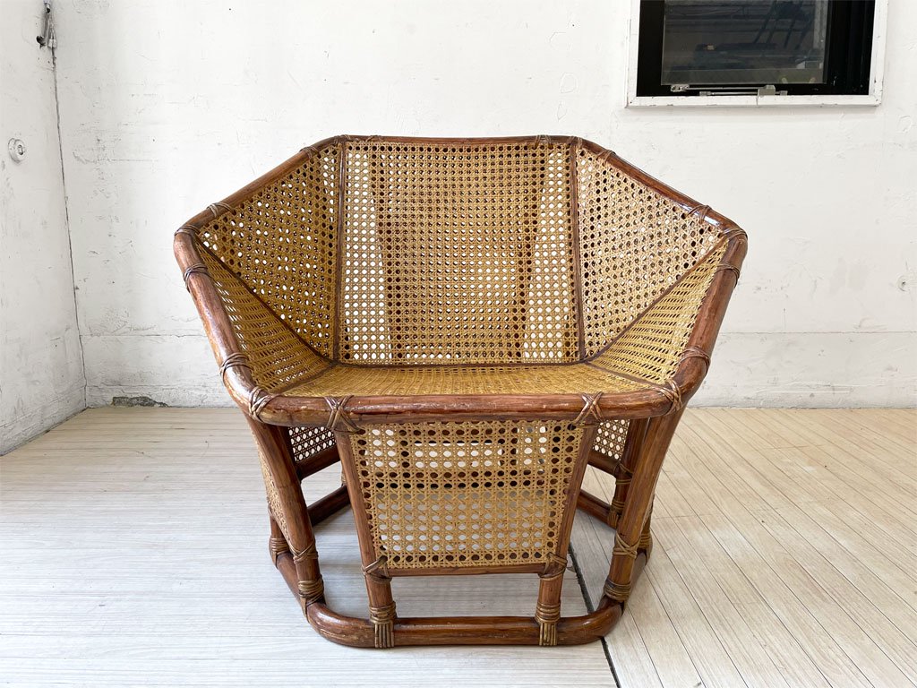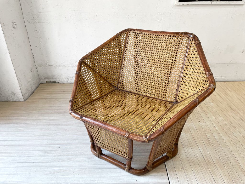 旧・山川ラタン製作所 ヤマカワラタン Yamakawa ビンテージ 籐製 六角形 ラウンジチェア レトロ 希少 B ★