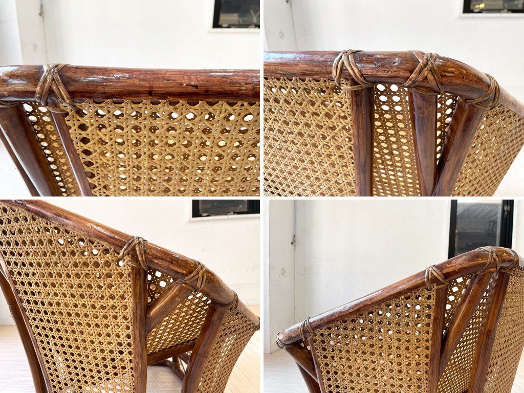 経年に伴い変化したラタンの暗褐色が魅力的な逸品。