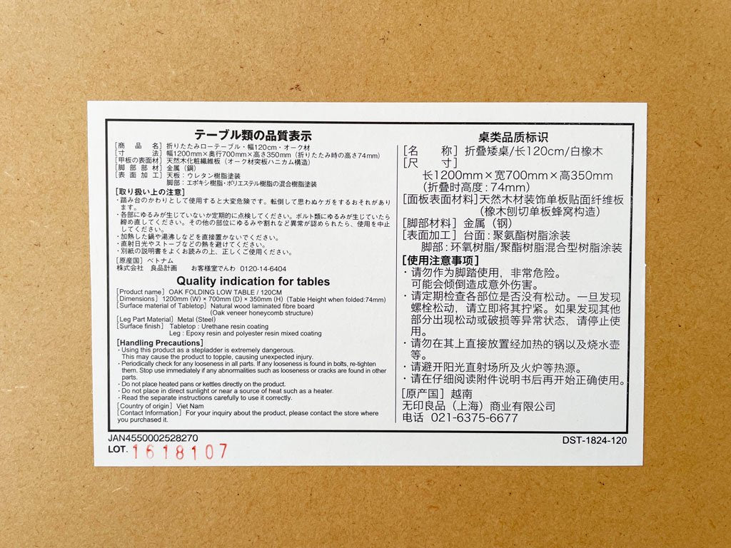 “無印良品 MUJI”の折りたたみローテーブルです。