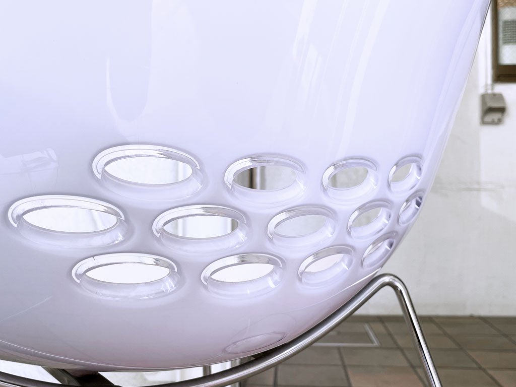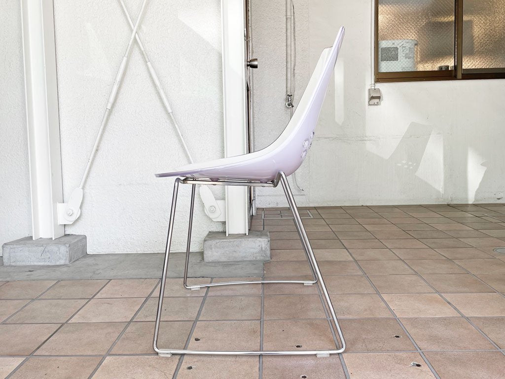清涼感溢れるホワイトの座面とカラフルな背面の組み合わせが特徴的。飴細工のような艶のある質感が美しいアイテムです。こちらは薄いラベンダーのようなクリアカラー。